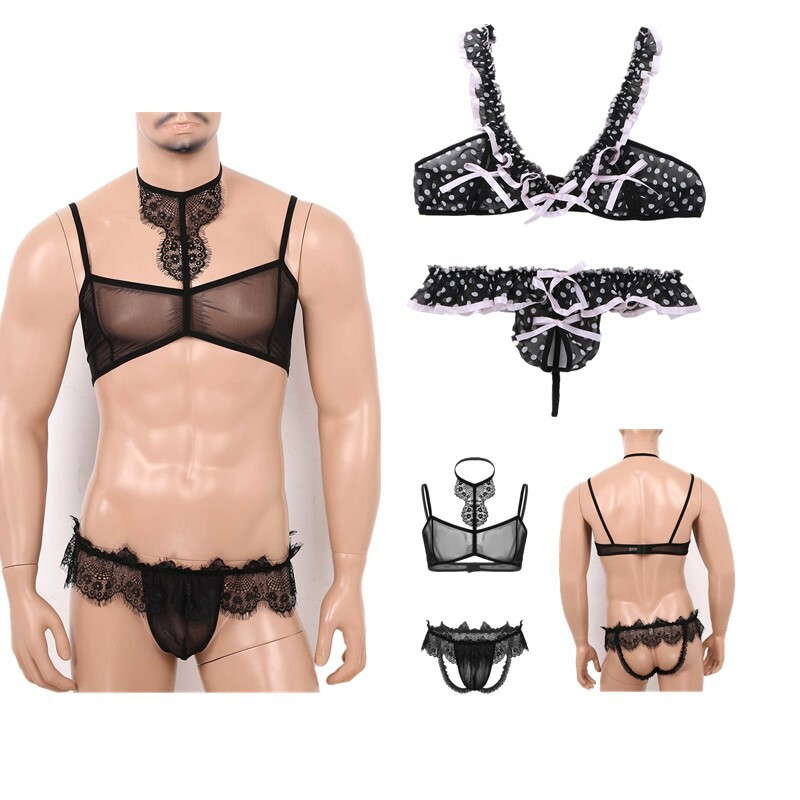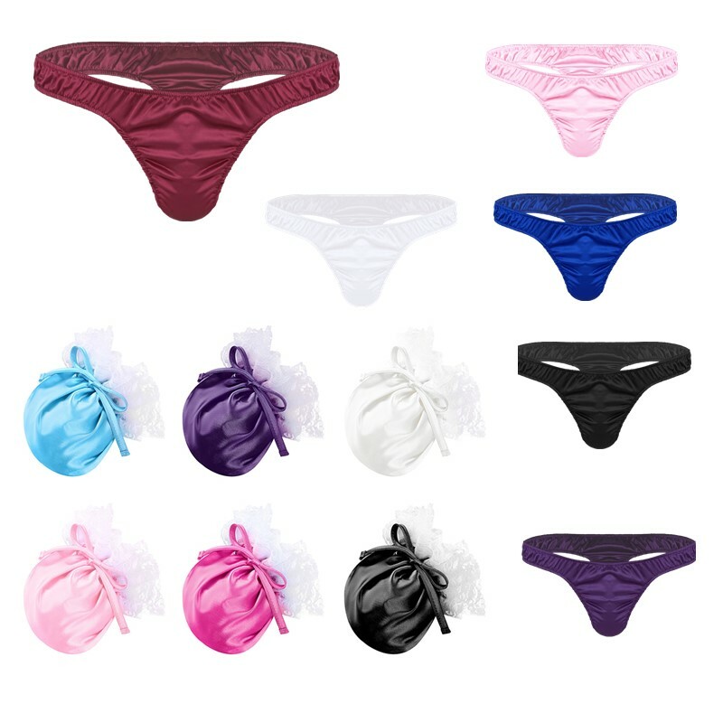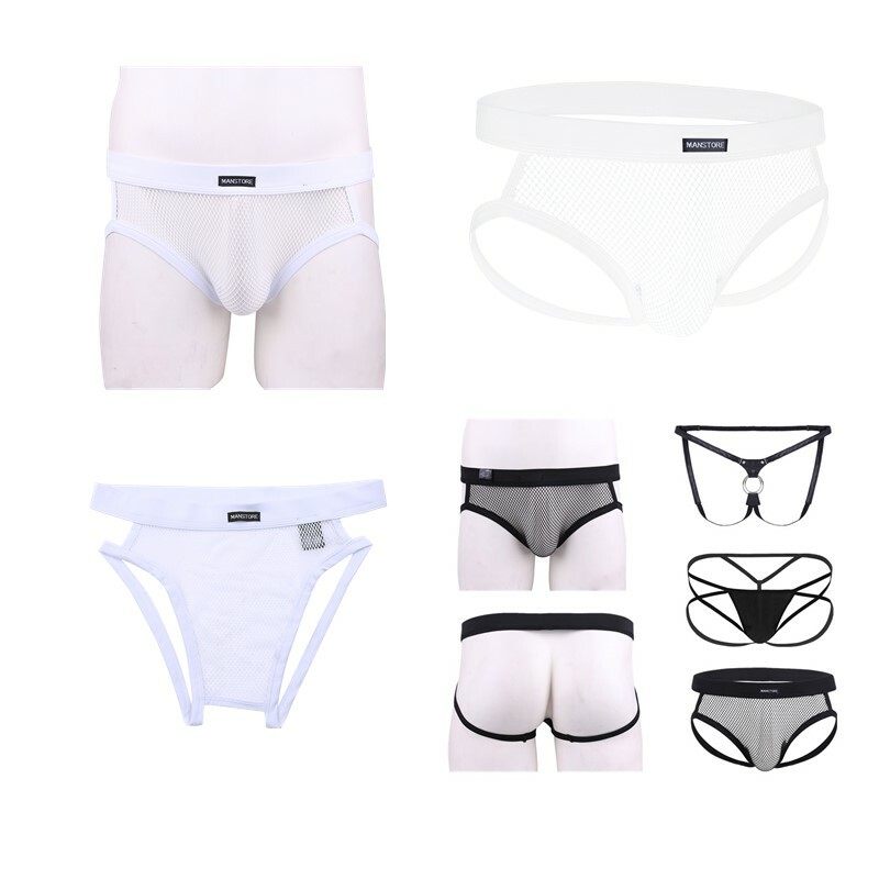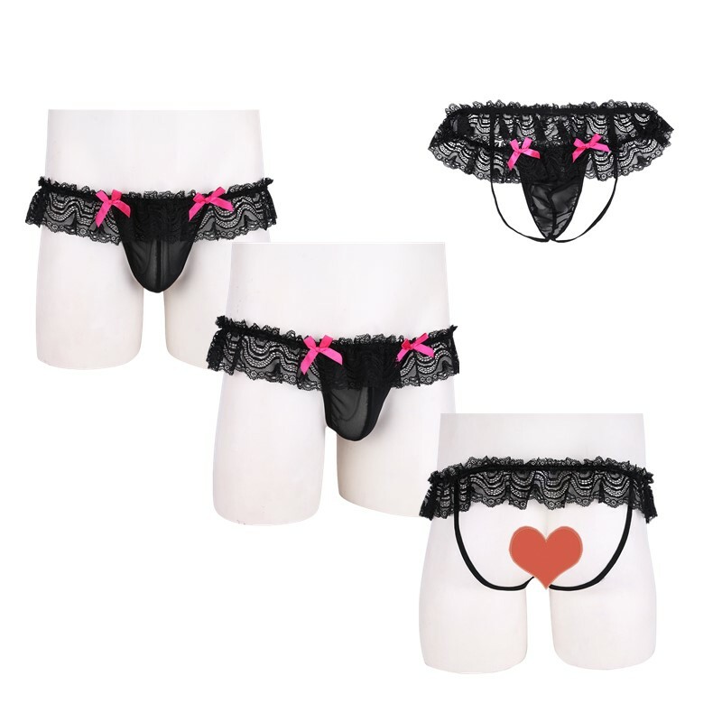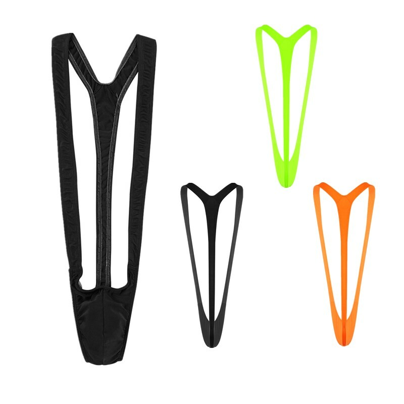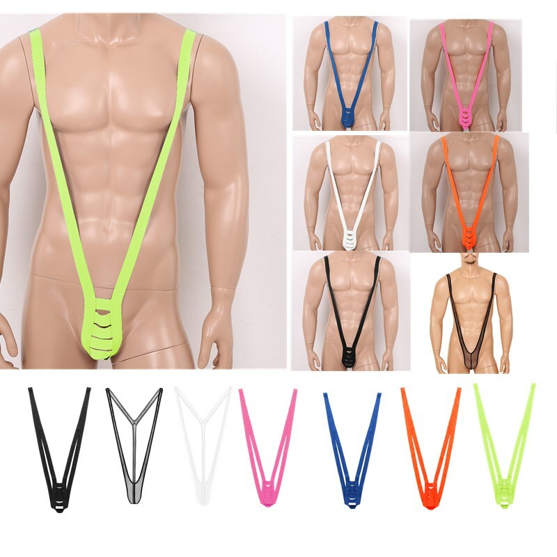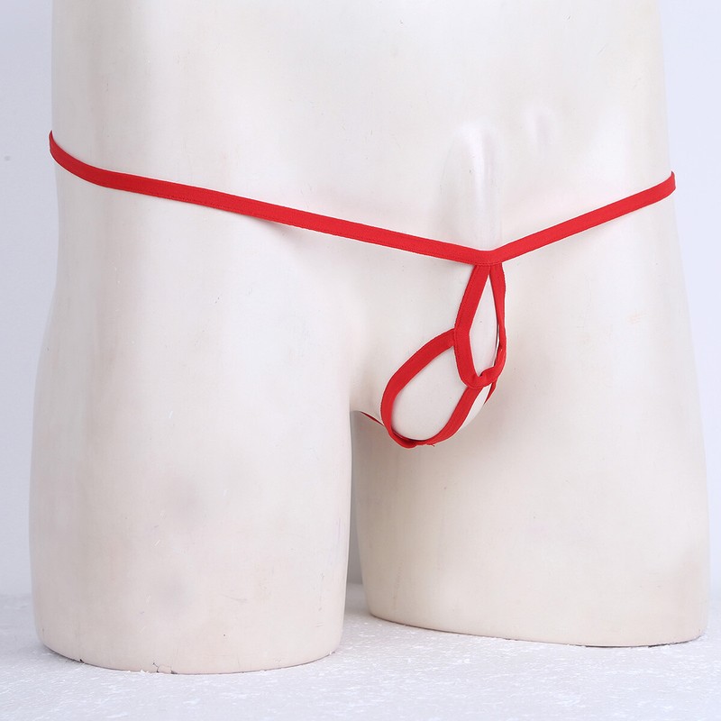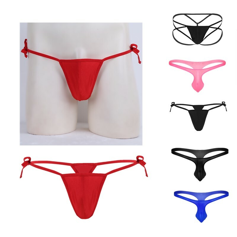 Men’s bikini G-string underwear lingerie, low rise, pull on closure.