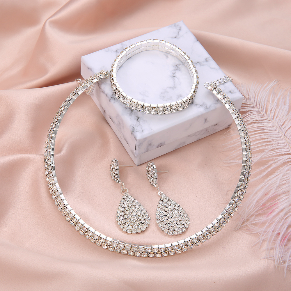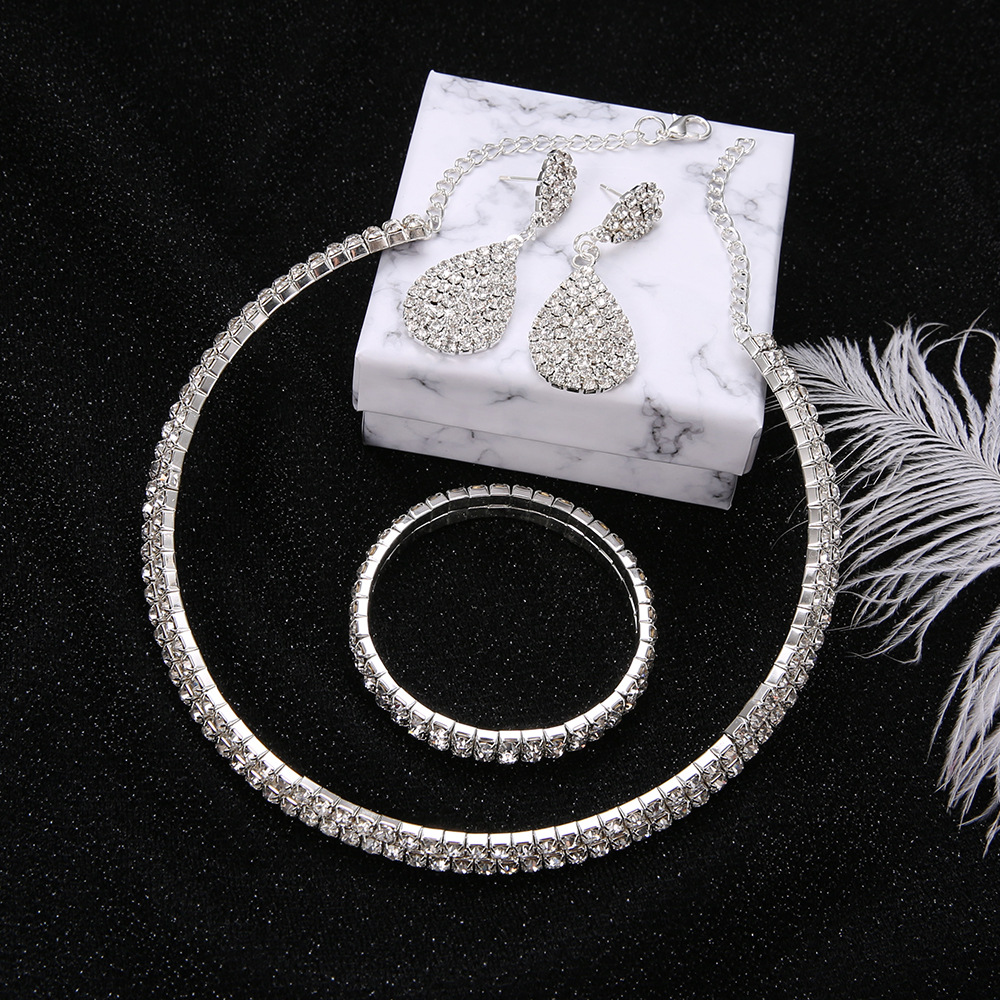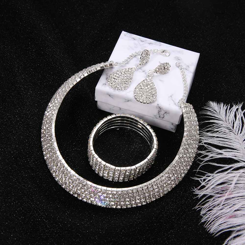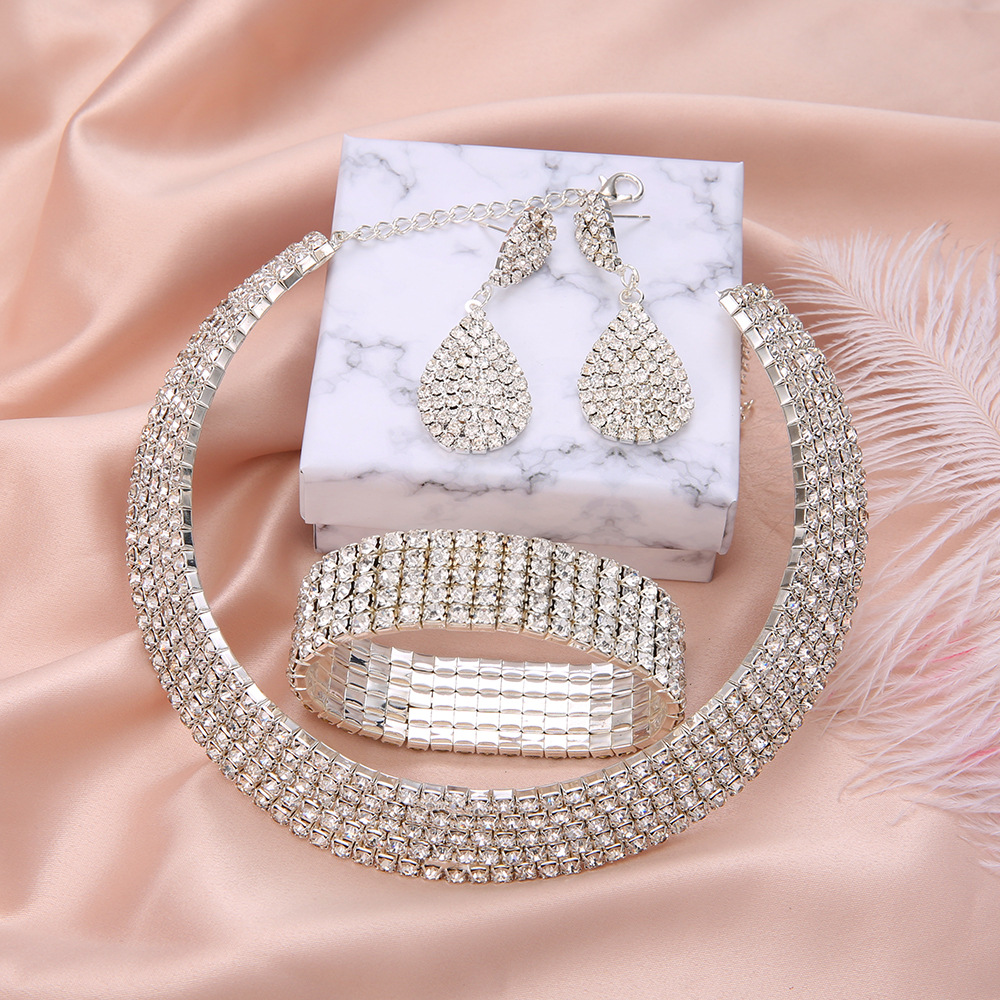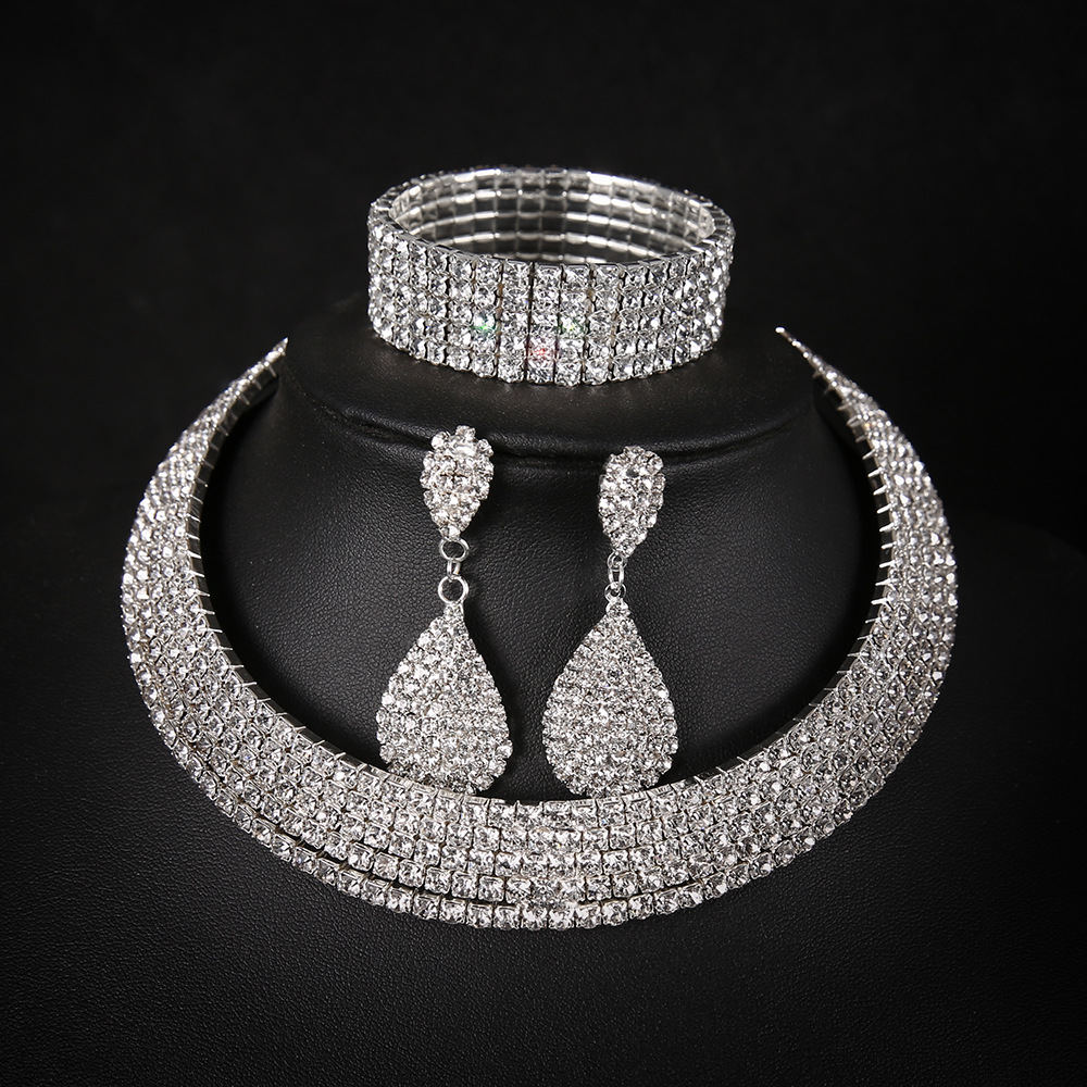 Fashion Wedding Bridal Crystal Rhinestone Women Necklace Earrings Set Jewelry