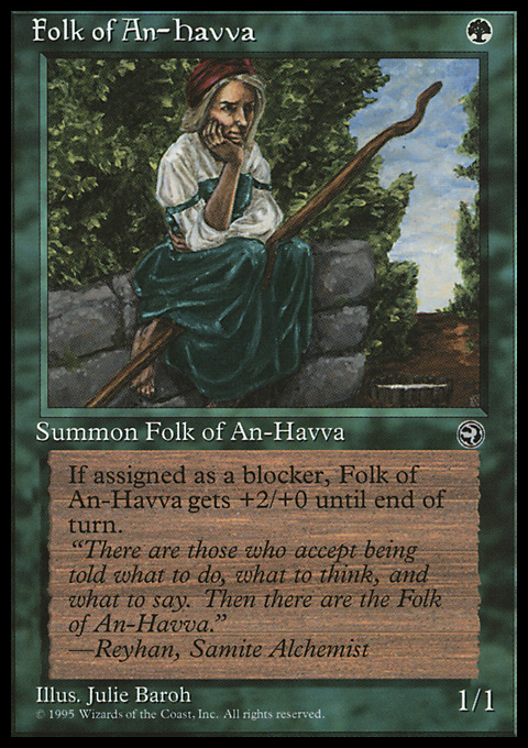 | | Name: | Folk of An-Havva | | Set: | Homelands | | Number: | 87b | | Condition: | Near Mint or better | | Language: | English | | Variation: | Non-Foil | |