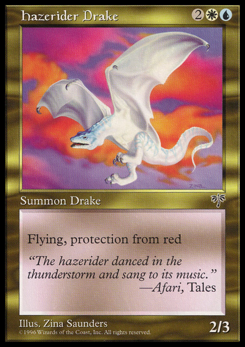 | | Name: | Hazerider Drake | | Set: | Mirage | | Number: | 268 | | Condition: | Light Play | | Language: | English | | Variation: | Non-Foil | |