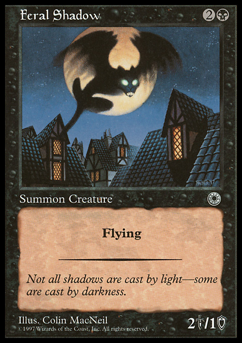 | | Name: | Feral Shadow | | Set: | Portal | | Number: | 93 | | Condition: | Light Play | | Language: | English | | Variation: | Non-Foil | |
