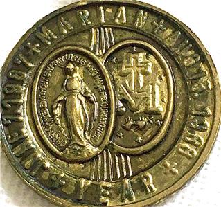 Vintage Marian Year Bronze Tone Medal. Dated June 7, 1987 - Aug. 15, 1988. Marked Germany. It measures roughly 7/8" in diameter. Very nice condition. Please examine the photos, they describe this listing better than any words. On iPhone, tap READ MORE for detail and photos.