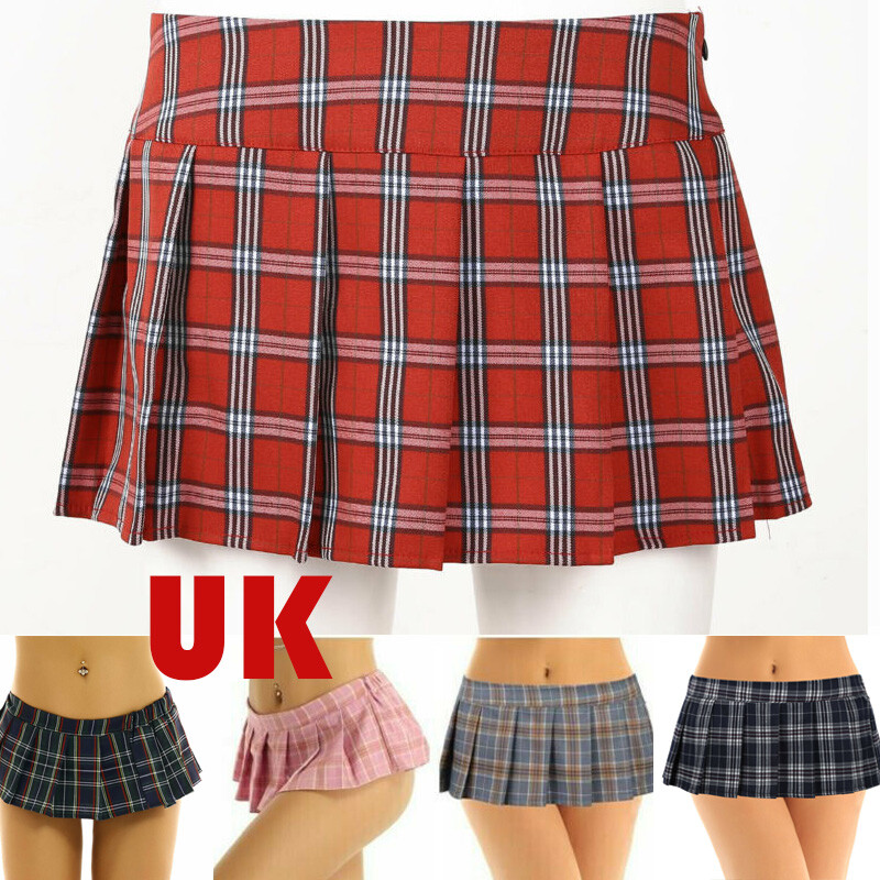 Women ladies Japanese schoolgirl cosplay mini plaid pleated skirt, simple but eye-catching piece.