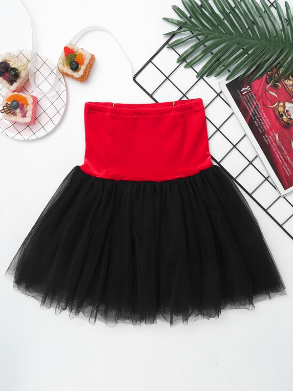 Matching 2 layers satin skirt, top red, white underneath. With elasticated waistband easy to pull on and a comfortable fit.