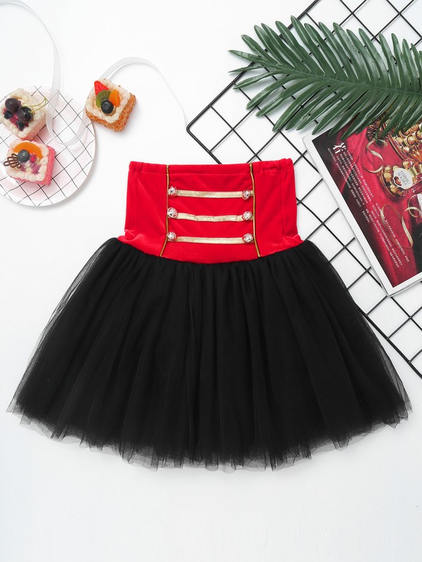 Girls Cake Tutu Skirt Nutcracker Circus Costume Drum Majorette Performance Outfits with Headband.