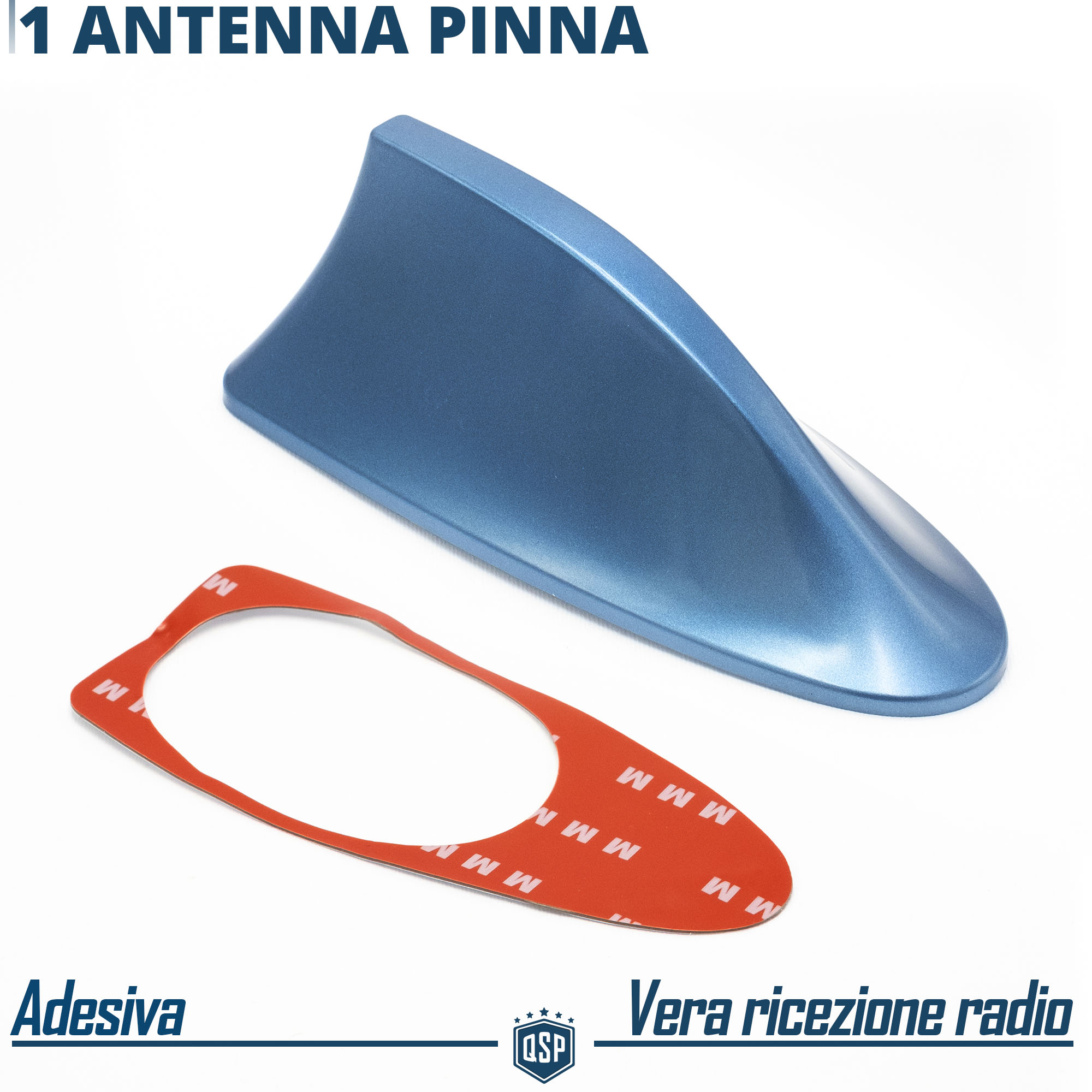 ANTENNA PINNA SQUALO VERA RICEZIONE, BLU IN ABS CON CAVO E PELLICOLA ADESIVA