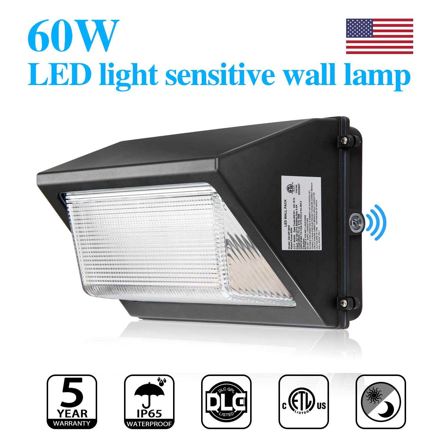 60W LED Wall Pack Light with Dusk-to-Dawn Sensor 5000K Outdoor Security Lighting
