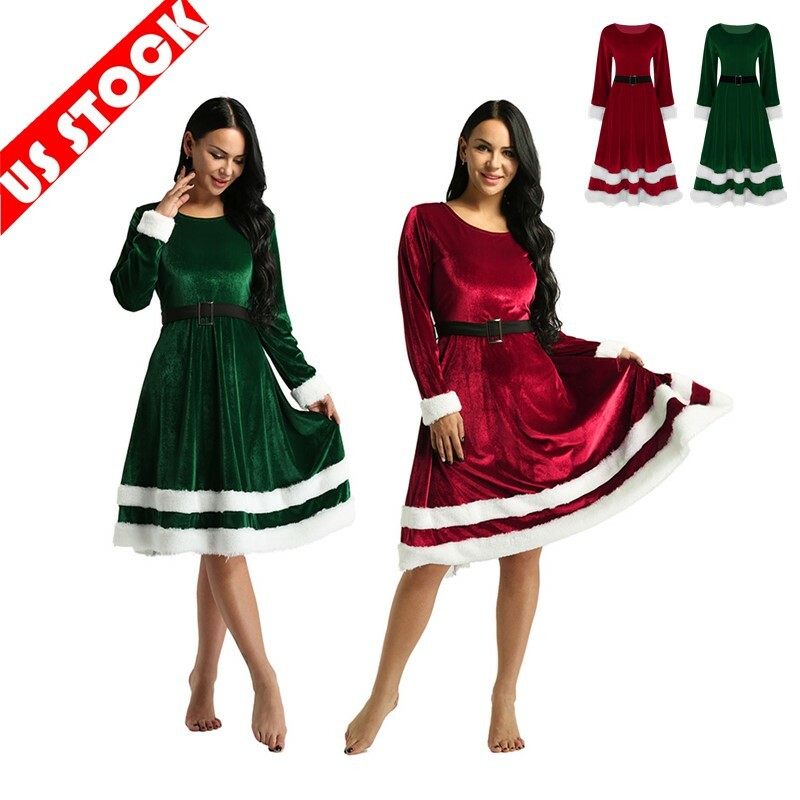 Women Girls Santa dress Mrs Claus costume dress, pull on closure.