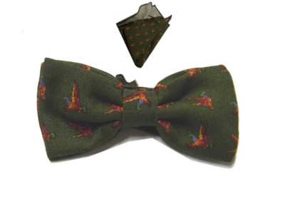 Papillon en laine pour fond masculin avec des dessins d'oiseaux pour chasser le faisan animal coloré sur un tissu de produit italien de haute qualité.