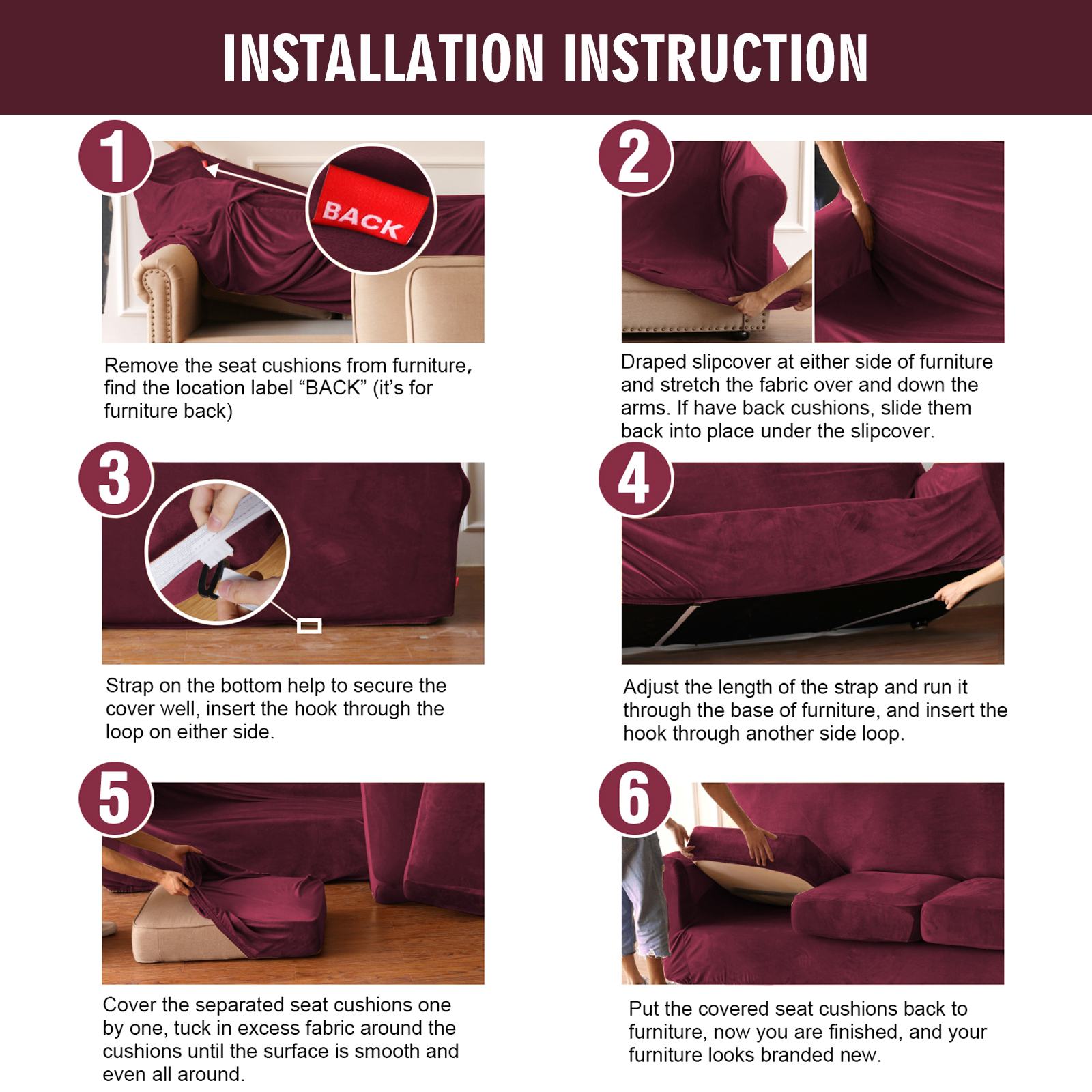 ♥ Easy to Install: With the installation guide, the sofa slipcovers can be finished within a few minutes by one person. They are also easy to remove when washing is needed.