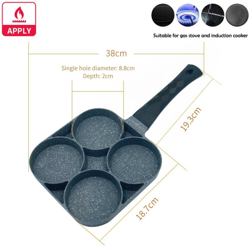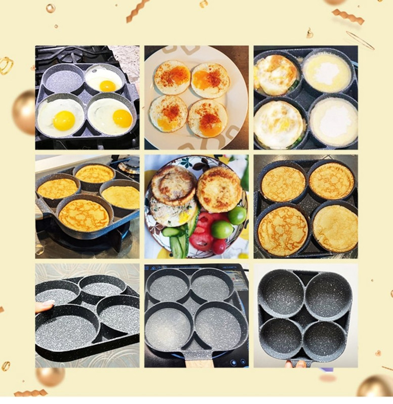 5.The pan can be used to make omelette, burger and the like, and the pan features 4 compartments to make cooking quick and easy.