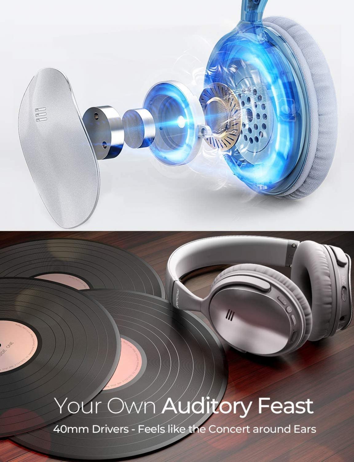 - Feel Superior Bass in Beat: Noise Cancelling Bluetooth Headphones use dual 40mm drivers and advanced CSR Bluetooth chip to brings balanced midbass and bright treble for you. A built-in CVC6.0 microphone guarantees hands-free calls in clear voice.