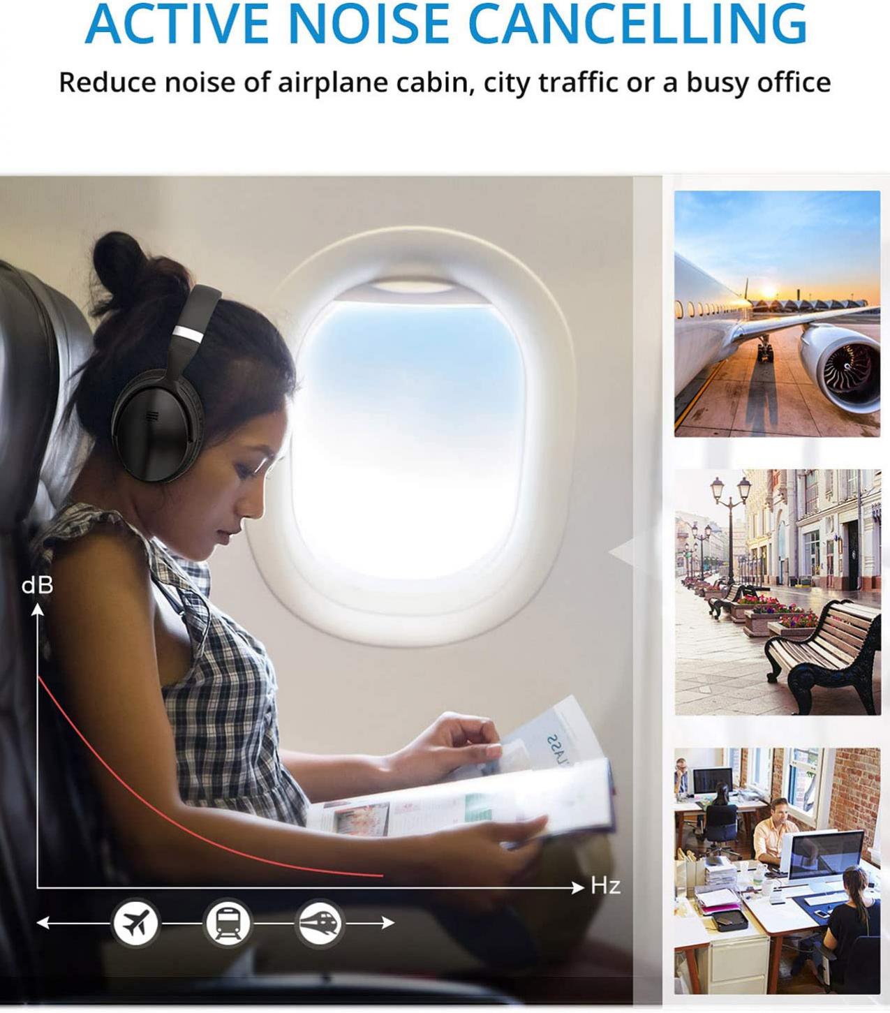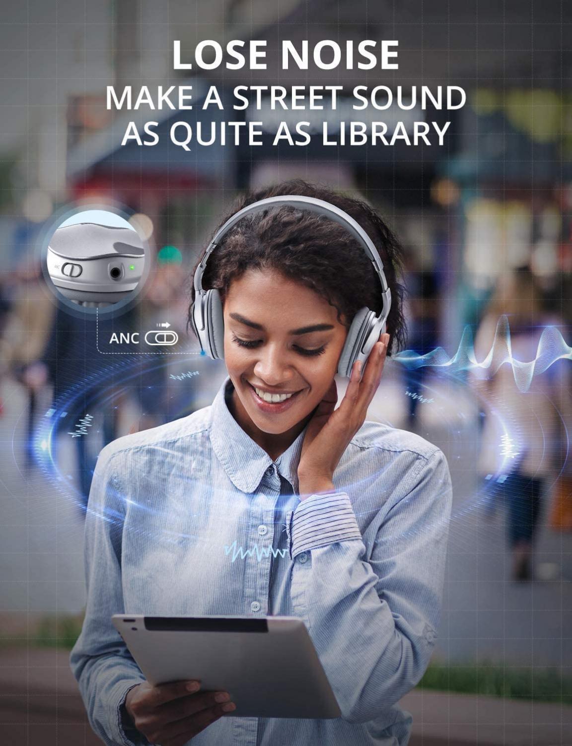 - Active Noise Cancelling Technology. ANC Noise Cancelling Bluetooth Headphones can effectively reduces the noise of city traffic, plane cabin or hubbub. It enables you to enjoy immersive auditory experience even in noisy environments.