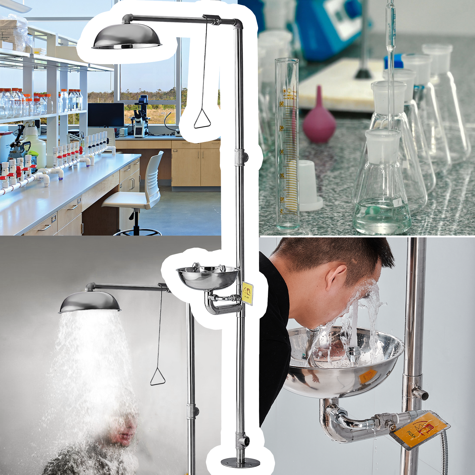 【VARIOUS APPLICATION】The emergency eyewash station is widely used in the lab, chemical, petrochemical, electronics, medical, and other industry fields, to give eyes, face, and body an emergency cleaning when exposed to harmful chemicals.