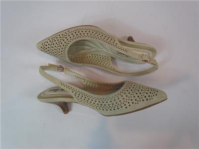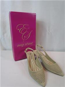NIB Easy Street Beige Punched Out Hole Design Sling Back Pump Kitten Heel Sz 6 N