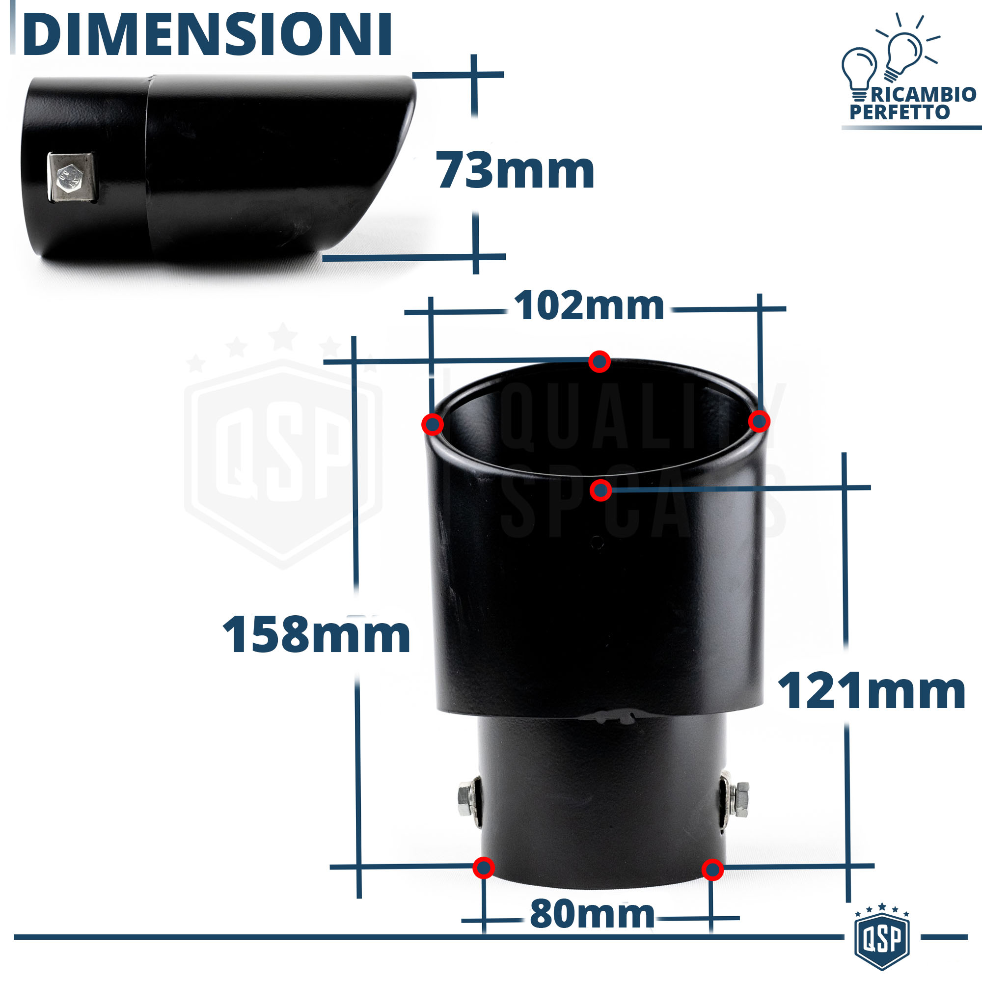 - Dimensioni: LUN da 121>158 mm - LAR 102 mm - H 73 mm