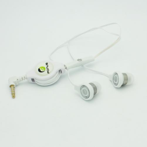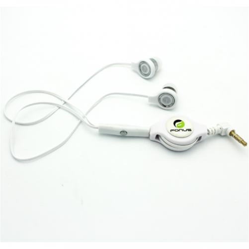Retractable Headset Hands-free Earphones w Mic Earbuds Headphones In-Ear Wired [3.5mm] [White]. Fonus retractable earphones with a standard 3.5mm jack. These earphone will work on any standard digital audio device that uses a 3.5mm port, making the earphones extremely convenient and portable. No longer will you have to deal with the mess that is audio wires, simply pull and lengthen the wires when listening and retract when you are done. These retractable earphones are truly a great accessory for traveling and listening to music and being the perfect companion for your phone or iPod or MP4 player or laptop computer!