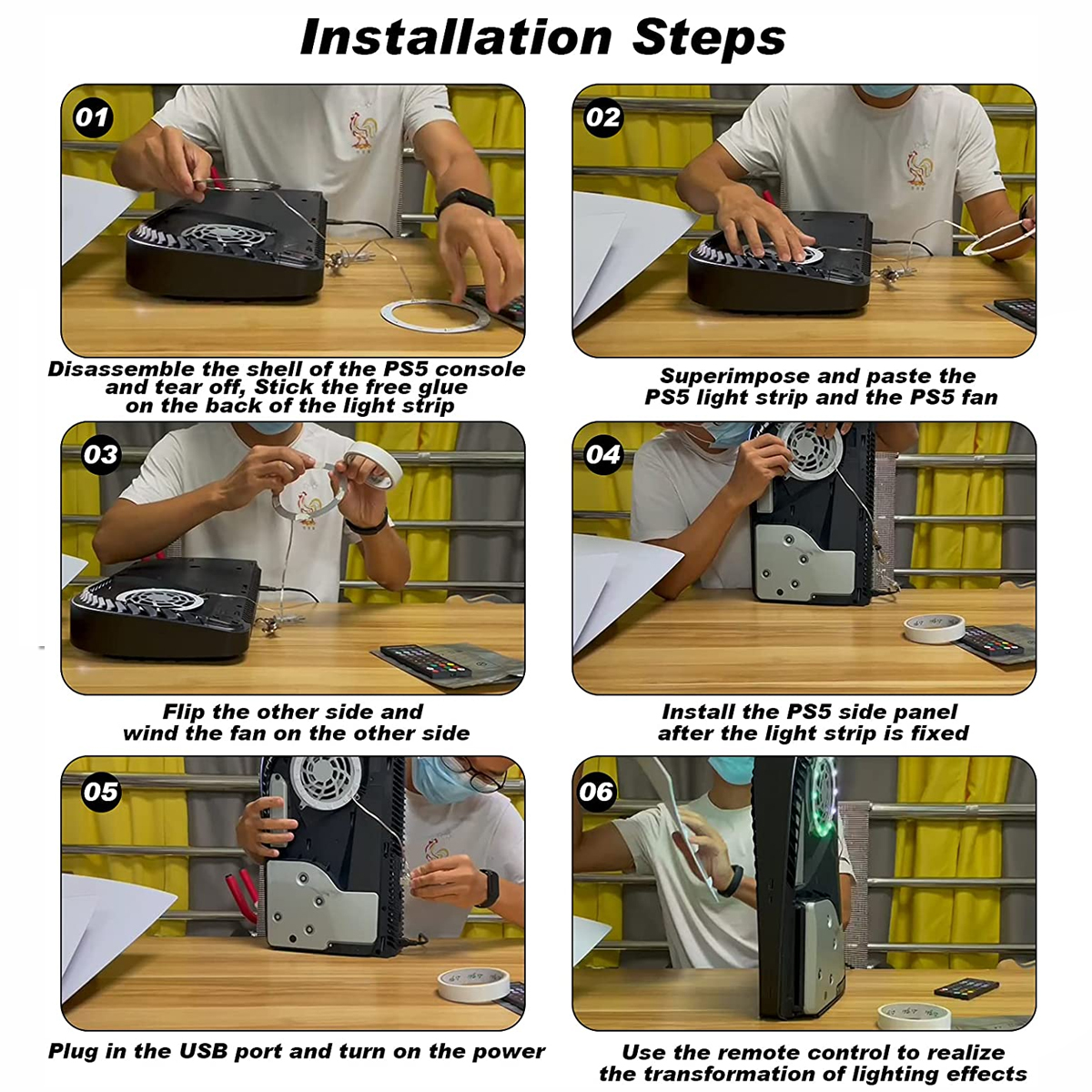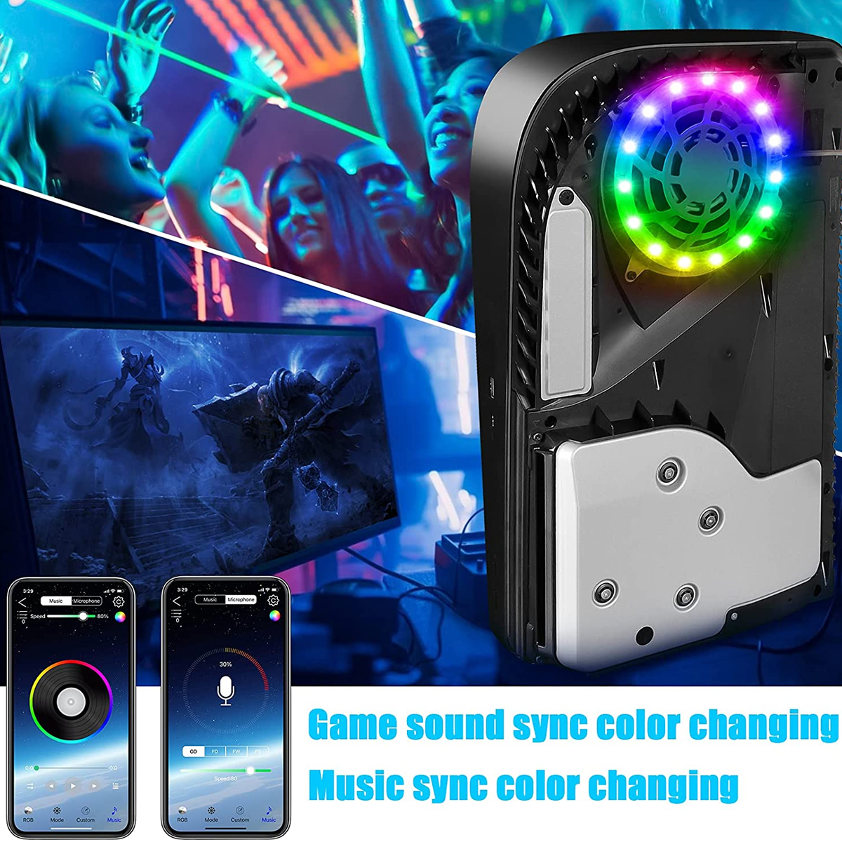 💝Simpler Installation: PS5 LED light installation steps are simple and easy to operate: open the PS5 plates; Stick the glue on the PS5 fan; Stick PS5 led light on the fan; Insert the USB, install PS5 plates, and power on the PS5 can use LED light for PS5. PS5 light kit uses 5050 RGB LED chips, making PS5 LED light for Playstation 5 very colorful and durable. The adhesive on the back of the LED light kit for the PS5 console is also a safe and non-toxic material, so you can buy it with confidence.