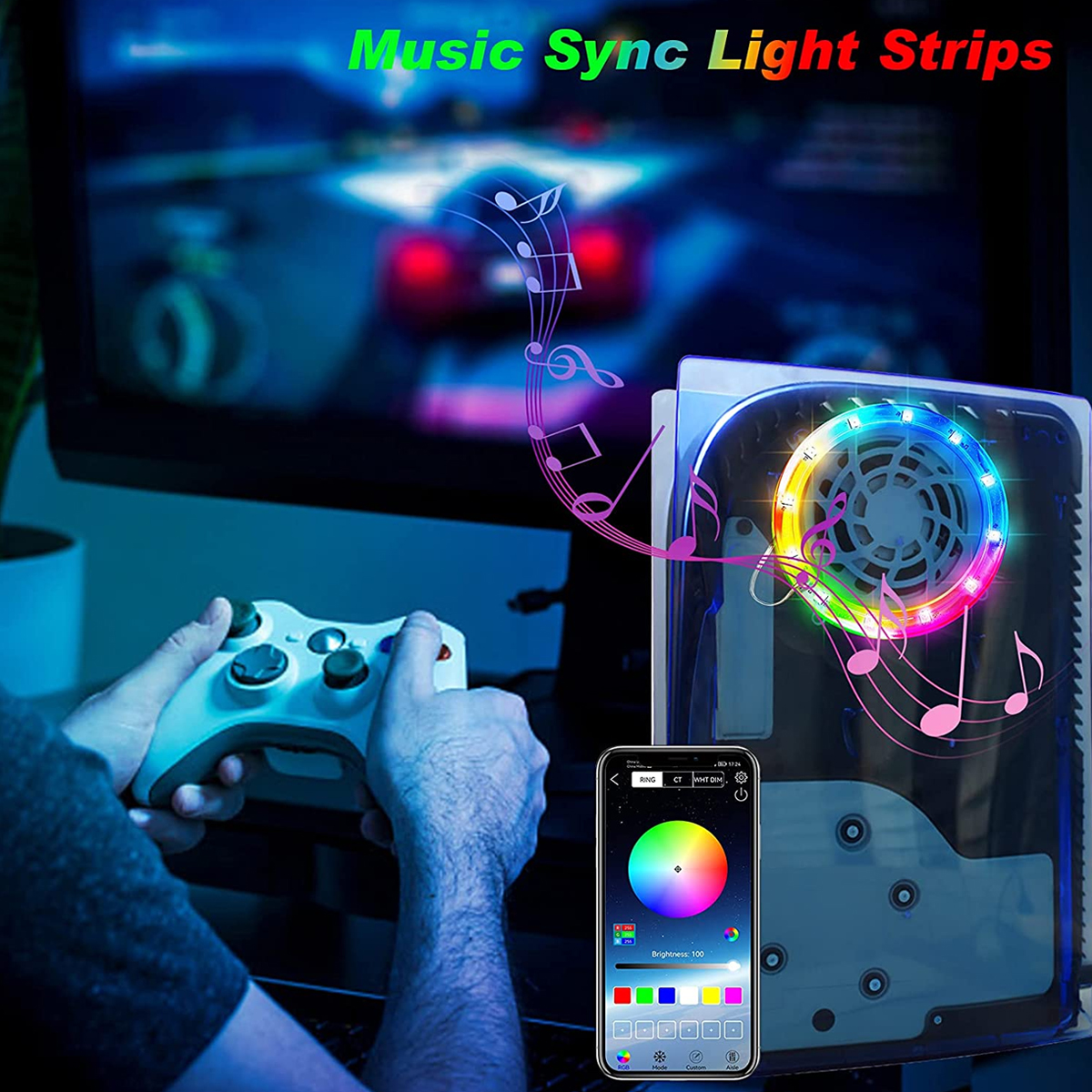 ⭐PS5 Customization: LED lights specially designed for PS5 console. It not only has a new upgrade in appearance and installation but also adds 2 new functions compared with the same model on the market.PS5 light kit hot wheel shape can perfectly fit the outside size of the radiator, without cutting or hindering heat dissipation; the music mode allows the light to jump according to the rhythm; 3 control methods make it more convenient to use.