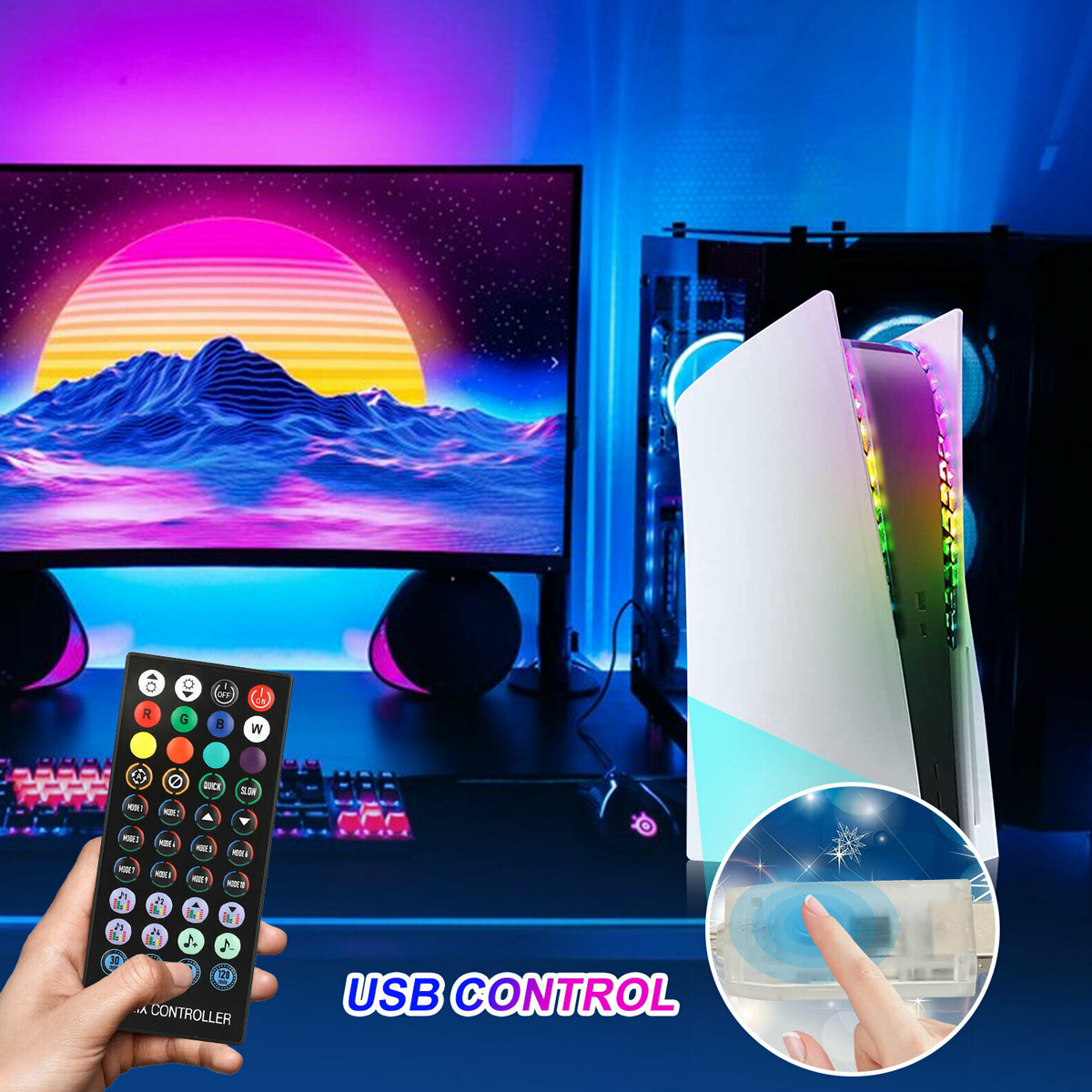 For PS5 Console USB 5050 RGB LED Light Strip Kit Sync Music 8 Colors 400 Effects
