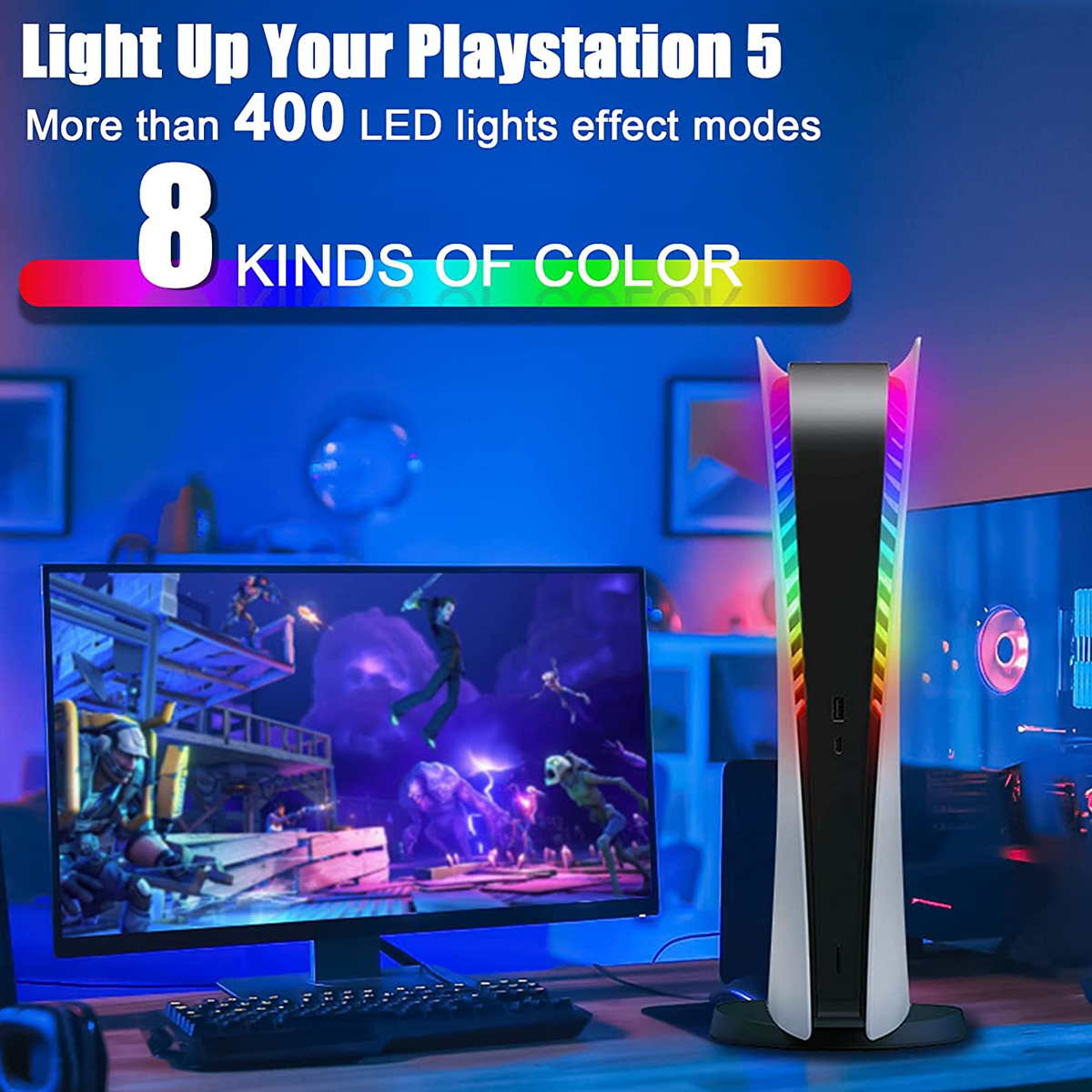 💝8+400 effects: Based on the traditional PS5 LED light, this PS5 LED light kit has 8 colors and 400 effects. 8 colors (red, cool white, yellow, orange, cyan, green, blue, purple) and 400 effects (auto, flash, 8-color gradient, etc.) PS5 LED light kit, we can customize the light and provide it for the PS5 console unique color, LED light for PS5 will bring unprecedented cool gaming experience.