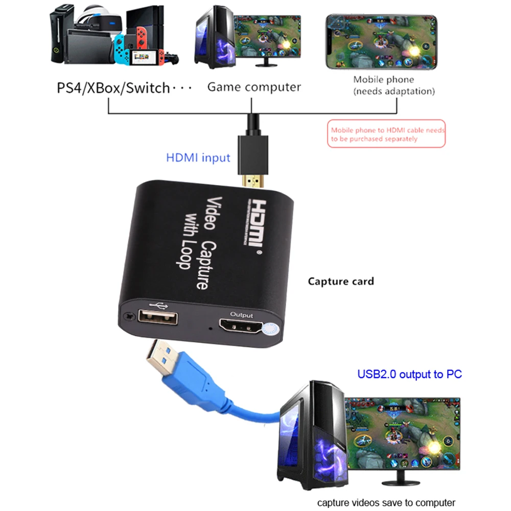 Video Card Capture HDMI Video Capture With Loop out USB2.0 Cards Grabber Streaming Live Broadcasts Video Recording