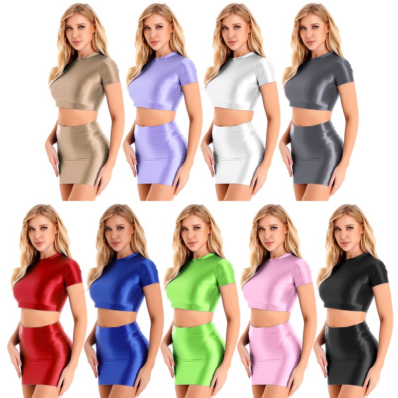 Womens Smooth Short Sleeve Crop Top with Skirt for Sports.