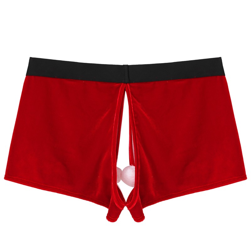 Men Christmas Crotchless Velvet Boxer Shorts Fluffy Ball Decor Lingerie Underwear Elastic Waistband Underpants.