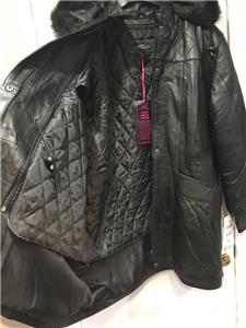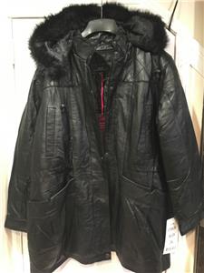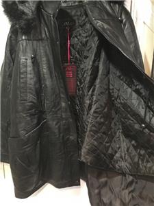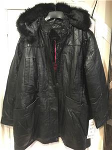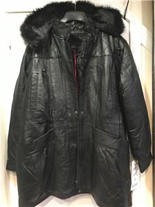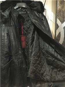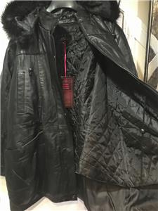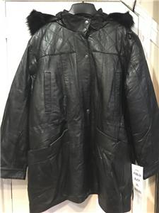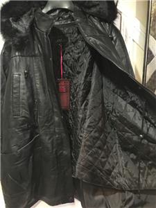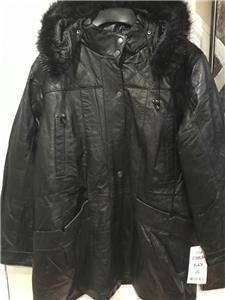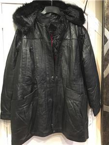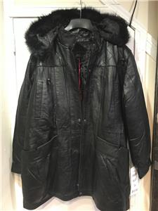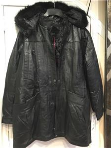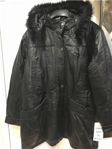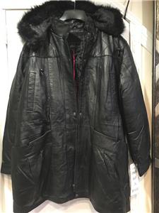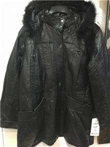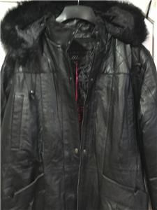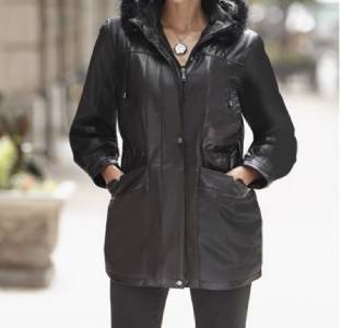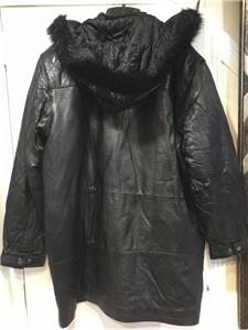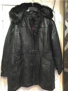 Buttery soft leather parka makes a style statement while keeping you cozy. This is a multi-season favorite. Zip front with storm placket. Non removable drawstring hood with faux fur trim. Shoulder pads. Two outside pockets and one inner pocket. Professionally leather clean. Imported. Available only in black.