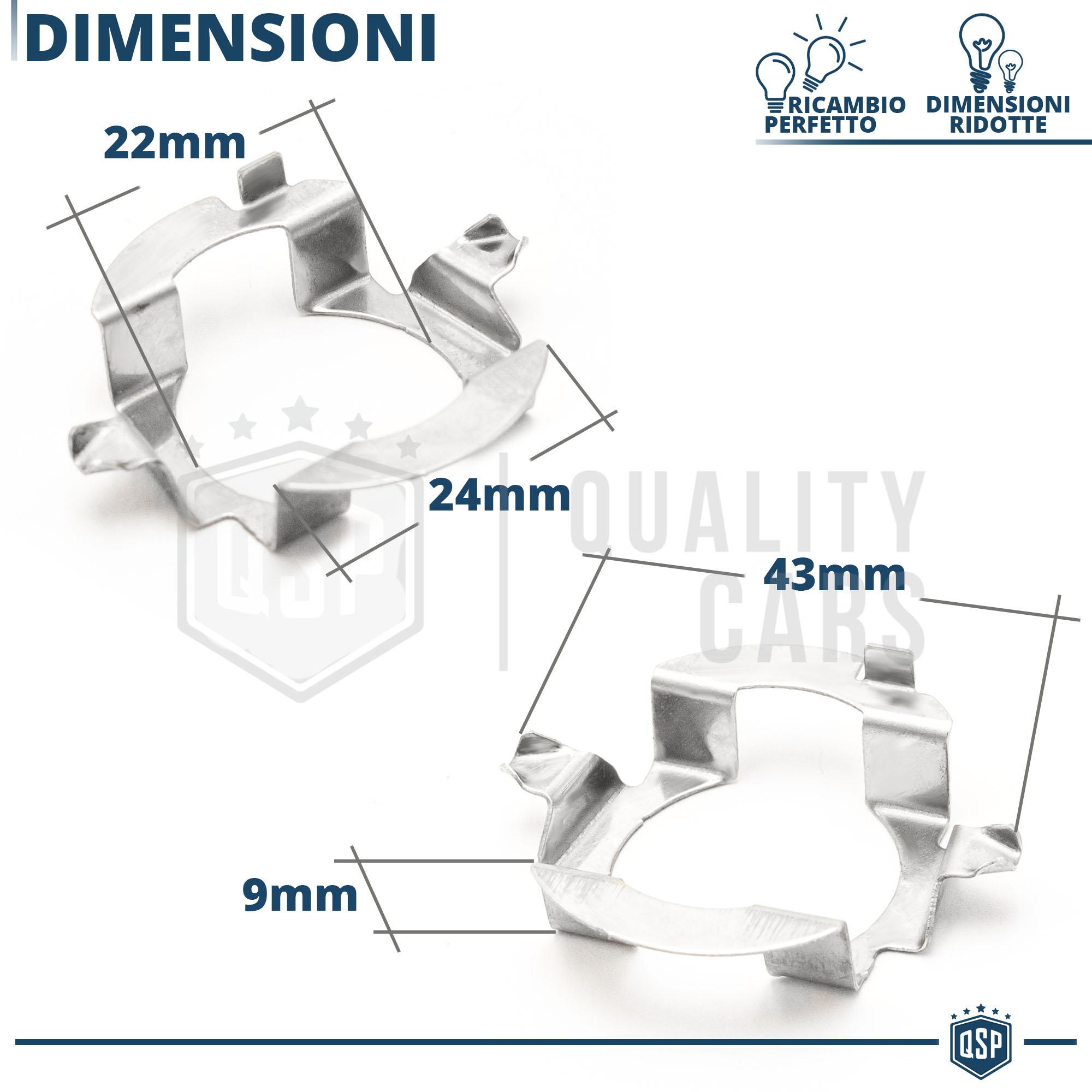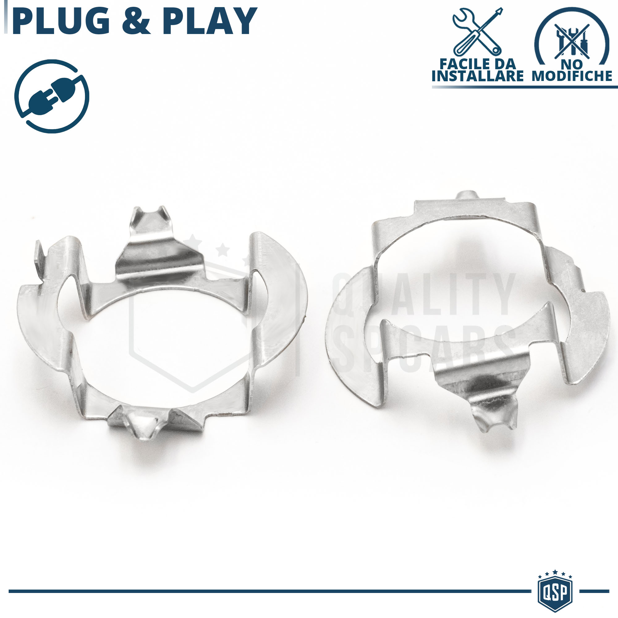 Rendono possibile l' installazione di kit luci su vetture che non presentano la classica clip di metallo per il bloccaggio della lampadina all' interno del faro, permettendo un montaggio professionale senza adattamenti nè modifiche.