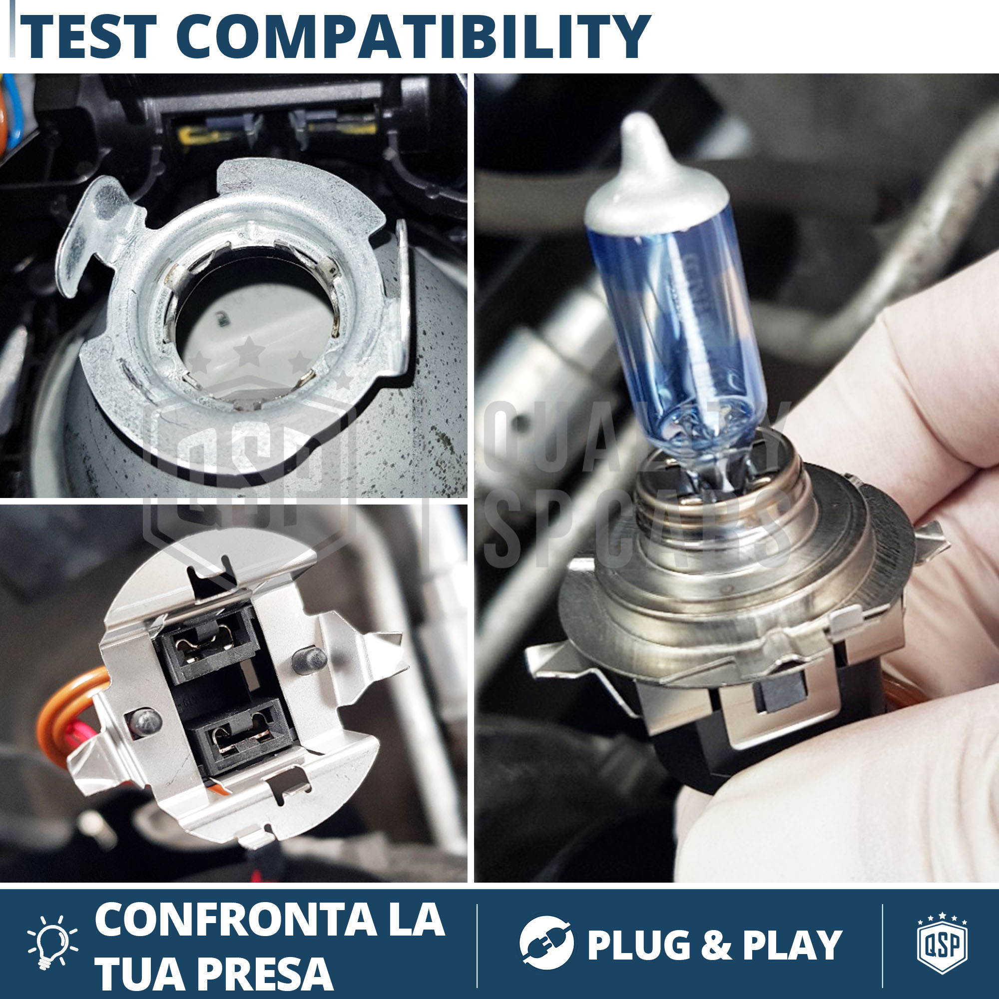 - La compatibilità dell' adattatore è dettata, a prescindere da anno e modello vettura, dal tipo di bloccaggio della lampadina alogena nel faro.