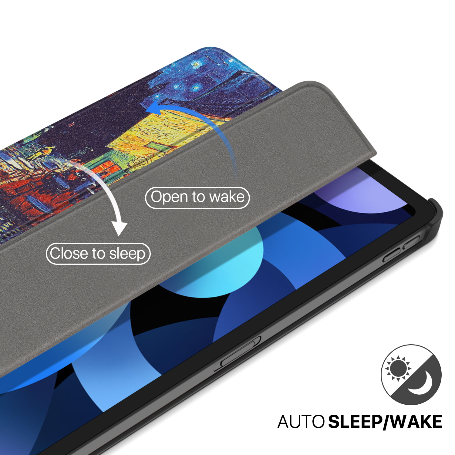 Slim, form-fitting cover to perfectly fit your iPad Air 4 Generation / iPad Air 5 Generation and provide full front and back protection. The cover is easy to securely attach and remove, and folds back for easy one-handed reading. It automatically puts your iPad Air to sleep when closed and wakes upon opening, making it easy to jump back into your book. Made of durable synthetic leather, this case is designed to be lightweight and protective, protect your device without adding unnecessary bulk, so you can hold it for hours of reading with minimal effort. With the nylon woven interior, the cover protects your iPad Air and keeps the screen clean without adding bulk, making it perfect for taking your iPad Air wherever you go.Feature: