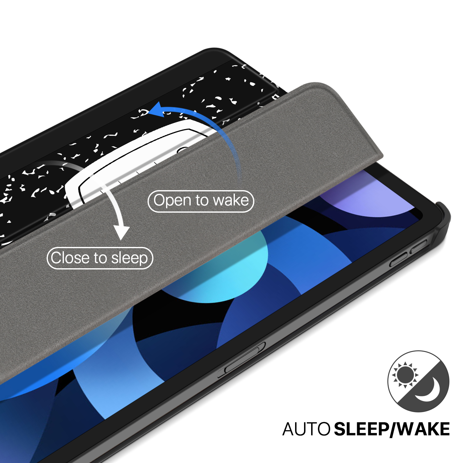 Slim, form-fitting cover to perfectly fit your iPad Air 4 Generation / iPad Air 5 Generation and provide full front and back protection. The cover is easy to securely attach and remove, and folds back for easy one-handed reading. It automatically puts your iPad Air to sleep when closed and wakes upon opening, making it easy to jump back into your book. Made of durable synthetic leather, this case is designed to be lightweight and protective, protect your device without adding unnecessary bulk, so you can hold it for hours of reading with minimal effort. With the nylon woven interior, the cover protects your iPad Air and keeps the screen clean without adding bulk, making it perfect for taking your iPad Air wherever you go.Feature: