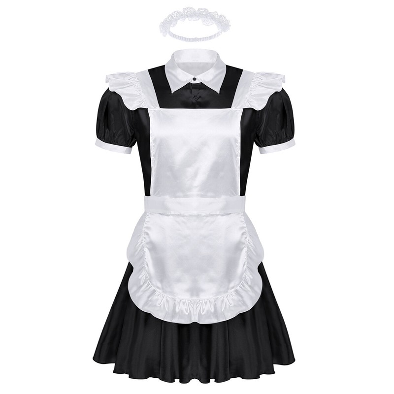 Men adults sissy maid cosplay costume outfit crossdressing, concealed side zipper closure.