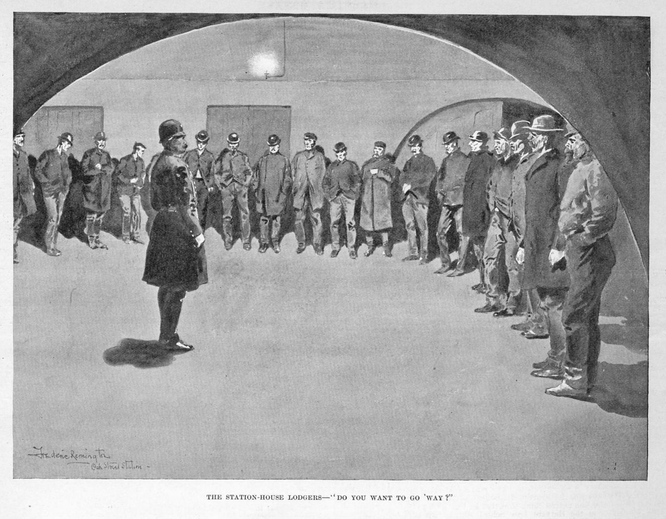 This genuine antique engraving/print is titled "THE STATION-HOUSE LODGERS", by FREDERIC REMINGTON, published in "Harper's Weekly" January 1894. This engraving from the year of 1894 is 7 x 9 inches in size with wide margins. It is in excellent condition, highly displayable and ready for framing and is guaranteed to be as described.