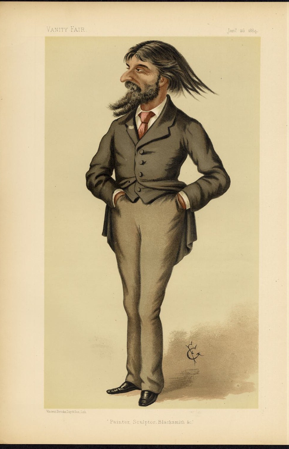 This original antique Vanity Fair colored lithograph caricature is titled "PAINTER SCULPTER BLACKSMITH", published in "Vanity Fair" January 1884. The image size of this dated lithograph from the year of 1884 is 7 x 12 inches. The complete page is 10 x 14 inches in size and on a thick paper stock. It is in excellent condition, highly displayable and ready for framing and will include the accompanying text as published. This lithograph is guaranteed to be as described. This is not a reprint as I do not deal in copies/reproductions.