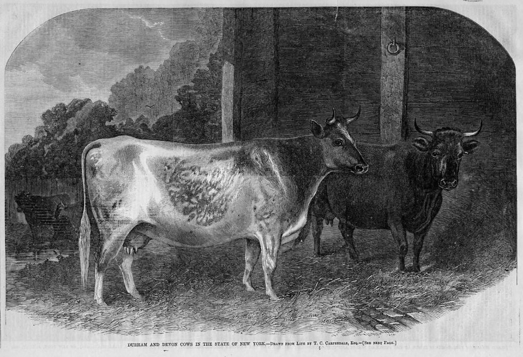 This genuine antique wood-cut engraving/print is titled "DURHAM AND DEVON COWS IN THE STATE OF NEW YORK", published in "Harper's Weekly" September 1860. This dated engraving from the year of 1860 is 11 x 15 inches in size with wide margins. It is in excellent condition, highly displayable and ready for framing and is guaranteed to be as described.