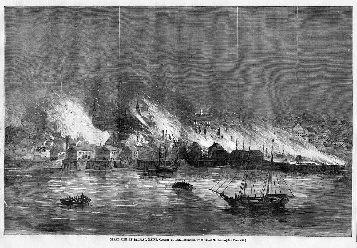 This genuine antique wood-cut engraving is titled "GREAT FIRE AT BELFAST, MAINE", published in "Harper's Weekly" November 1865. This dated engraving from the year of 1865 is 11 x 15 inches in size with wide margins. It is in excellent condition, highly displayable and ready for framing and is guaranteed to be as described.