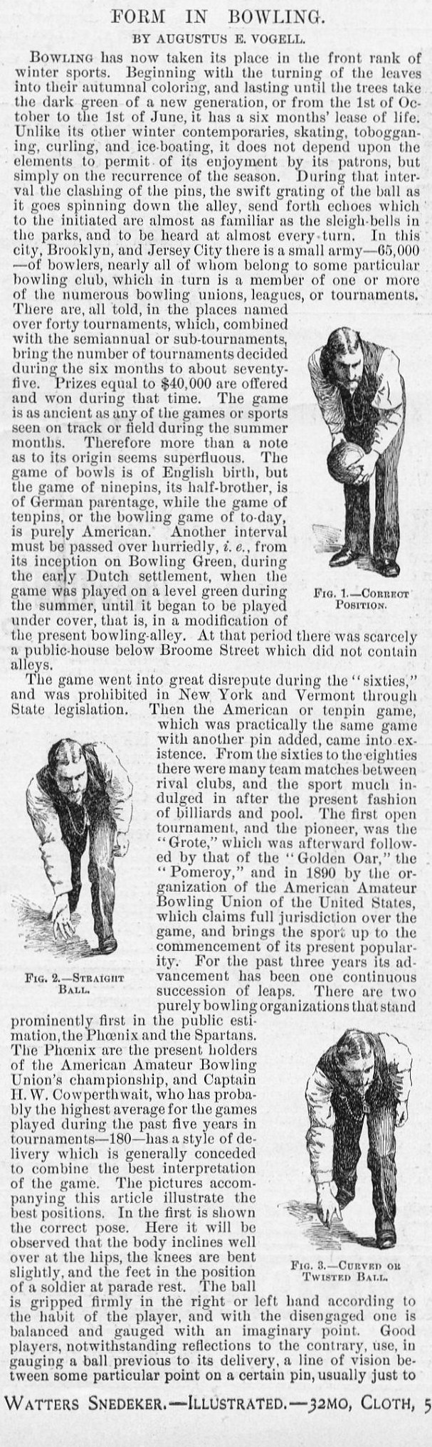 This genuine antique illustration and article is titled "FORM IN BOWLING", published in "Harper's Weekly" March 1893. This antique illustration and article from the year of 1893 is 11 x 15 inches in size with wide margins. It is in excellent condition, highly displayable and ready for framing and is guaranteed to be as described.