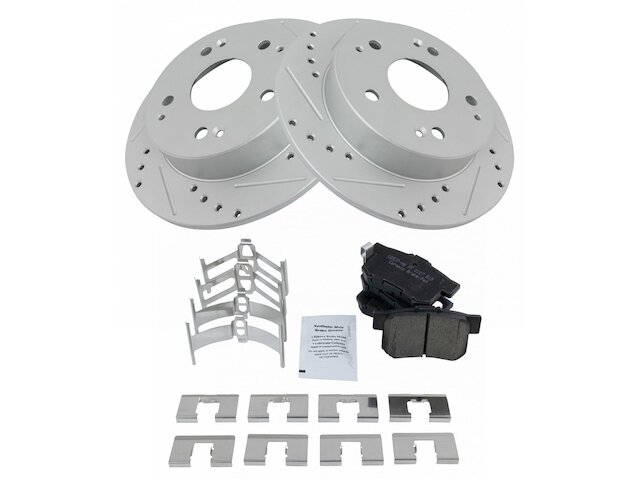 (2) Rear Performance Brake Rotors; (1) Rear Ceramic Brake Pad Set; Brake Pad Contact Point Grease