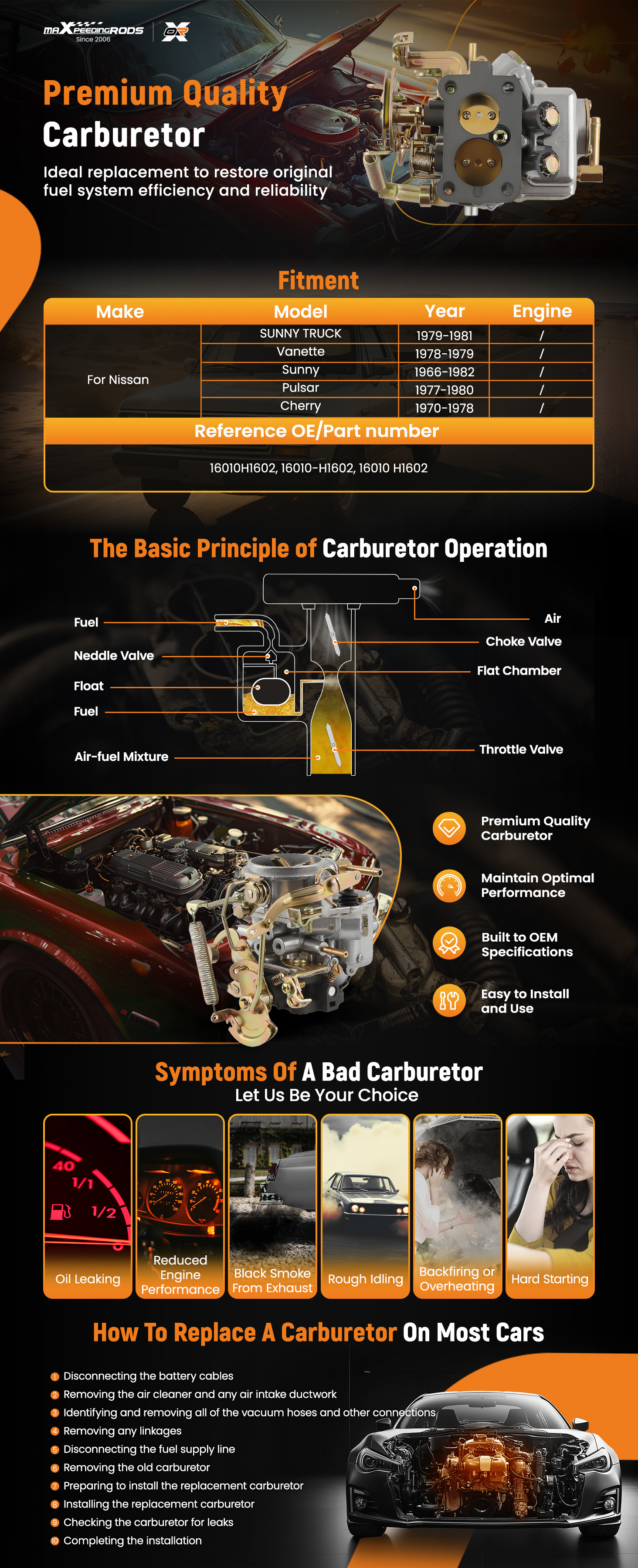 For Nissan Datsun Sunny Datsun B210 A12 engines: