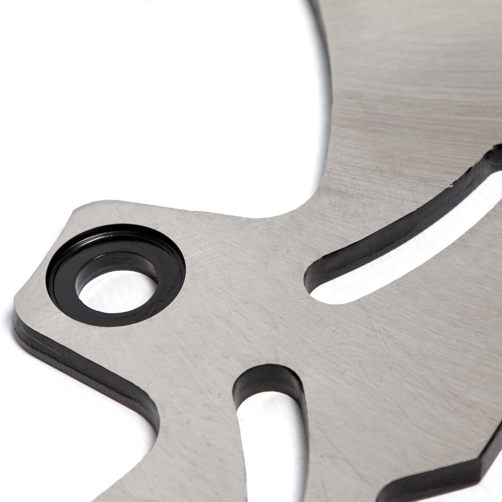 Rezo stainless steel rear brake discs are manufactured using high grade (420) stainless steel. The discs are cut using a CNC controlled laser and finished with dual diamond grinders to ensure true flatness and high braking performance.