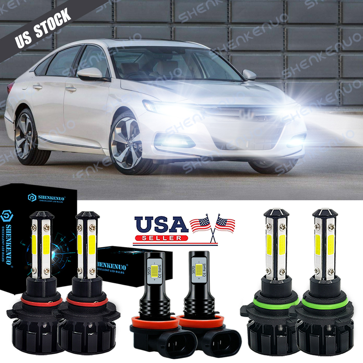 For Honda Accord 2006-2009 2010 2011 2012 LED Headlight High-Low Fog Light Bulbs