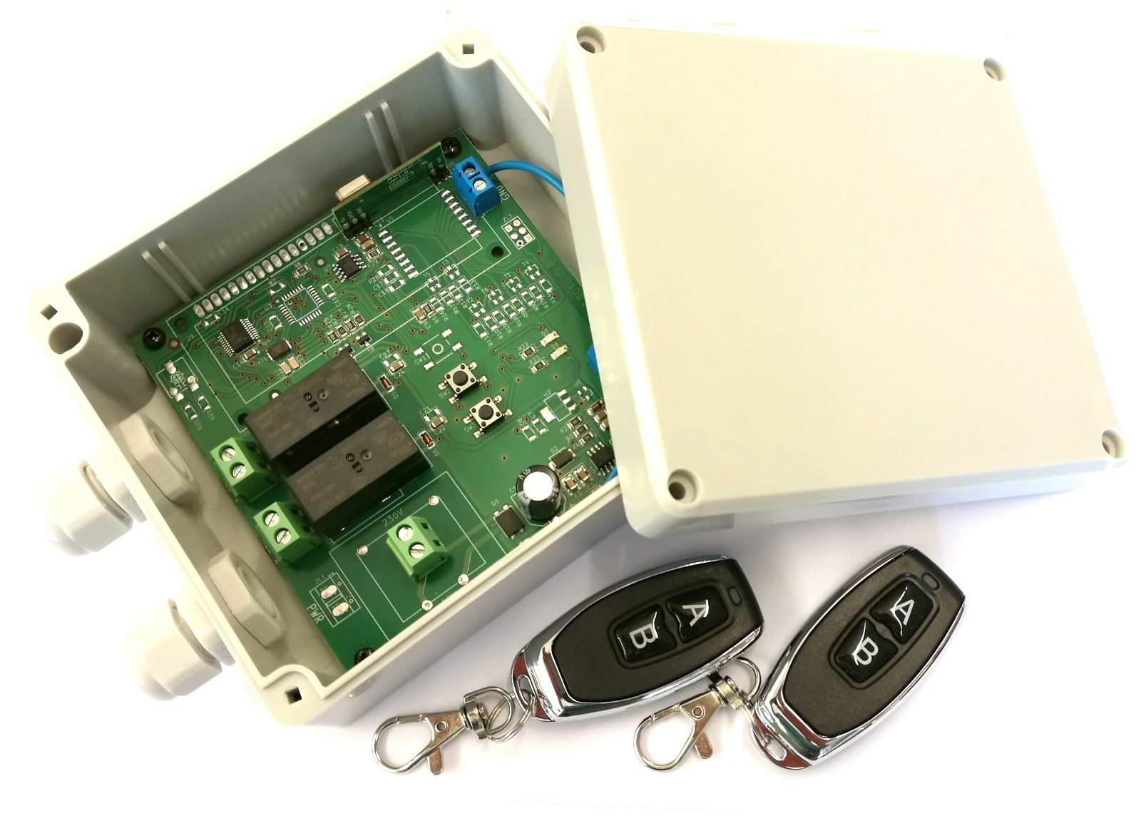 Es ist außerdem Ein universeller Empfänger für alle 433MHz Sender mit Keeloq Verschlüsselungstechnik sowie vielen Festcode Sendern (z.B. Steckdosensets) und ASK Modulation wie z.B.: