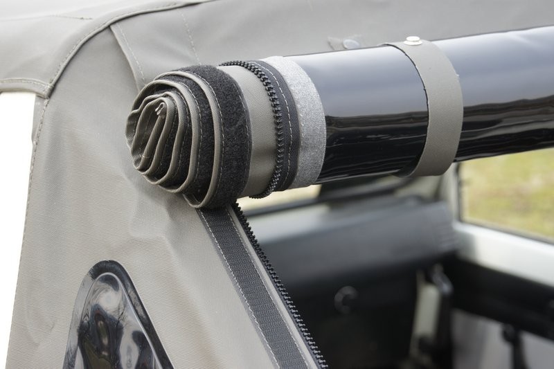 Capote completa con la parte posteriore spiovente in materiale tessuto Denim spalmato impermeabile al 100%, rivestita internamente con tessuto anticondensa, vetri antisfriso fume' con un nuovo materiale molto flessibile. La finestra posteriore di grandi dimensioni e' avvolgibile, consentendo un effetto cabrio molto piacevole, mentre quando e' chiusa, con i vetri triangolari laterali consente un ottima visibilita'. Le cerniere posteriori sono sovradimensionate ed hanno un bordo di protezione chiuso con velcro. Il Fast Back Suntop dona una linea molto aggressiva alla vettura e puo' essere utilizzata tutto l'anno. Disponibile nelle colorazioni Nero, Kaki e Bianco