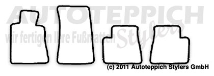 Die Fußmatten werden für Sie passgenau in Wächtersbach/Hessen gefertigt und mit unserem Versandpartner DHL zu Ihnen versendet. Es handelt sich hierbei nicht um Lagerware - alles wird für Sie unter Berücksichtigung Ihrer Farbwünsche für Sie gefertigt!