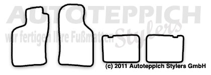 Die Fußmatten werden für Sie passgenau in Wächtersbach/Hessen gefertigt und mit unserem Versandpartner DHL zu Ihnen versendet. Es handelt sich hierbei nicht um Lagerware - alles wird für Sie unter Berücksichtigung Ihrer Farbwünsche für Sie gefertigt!