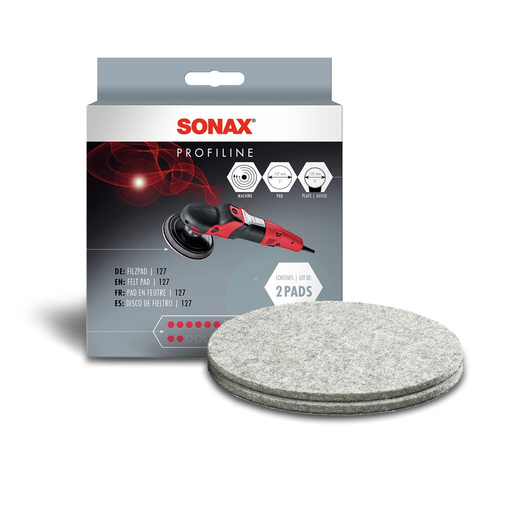 - Produkt gleichmäßig auf ein angefeuchtetes SONAX Filzpad geben.