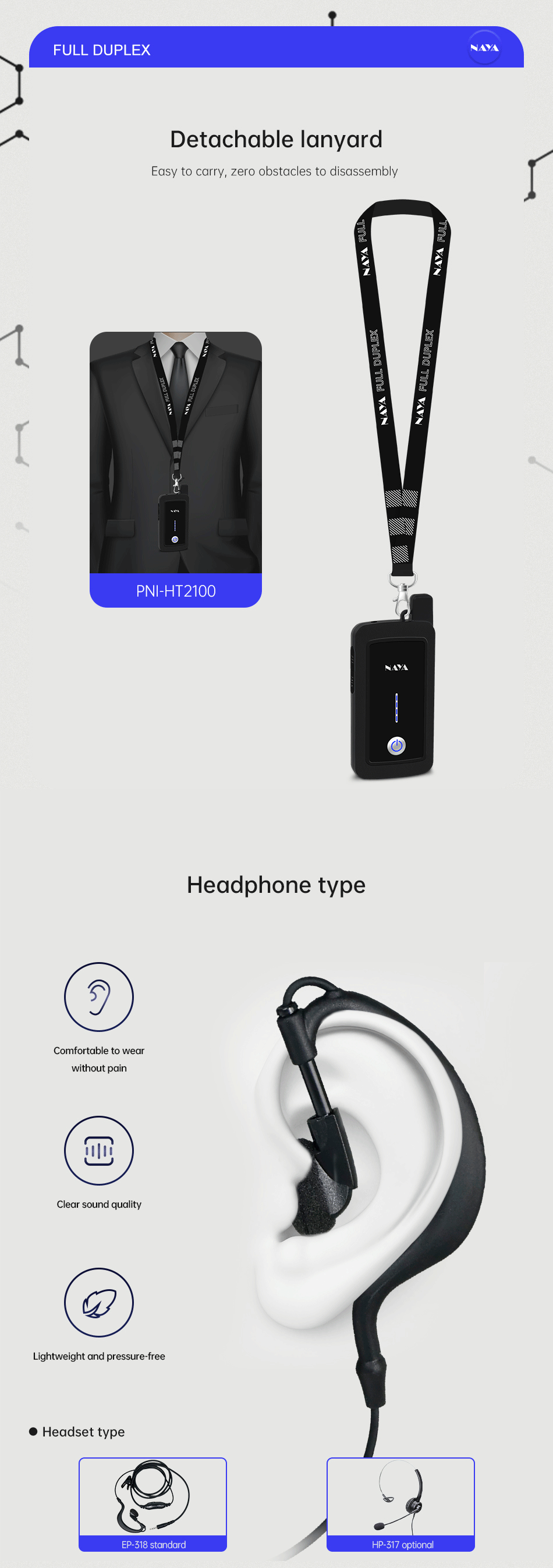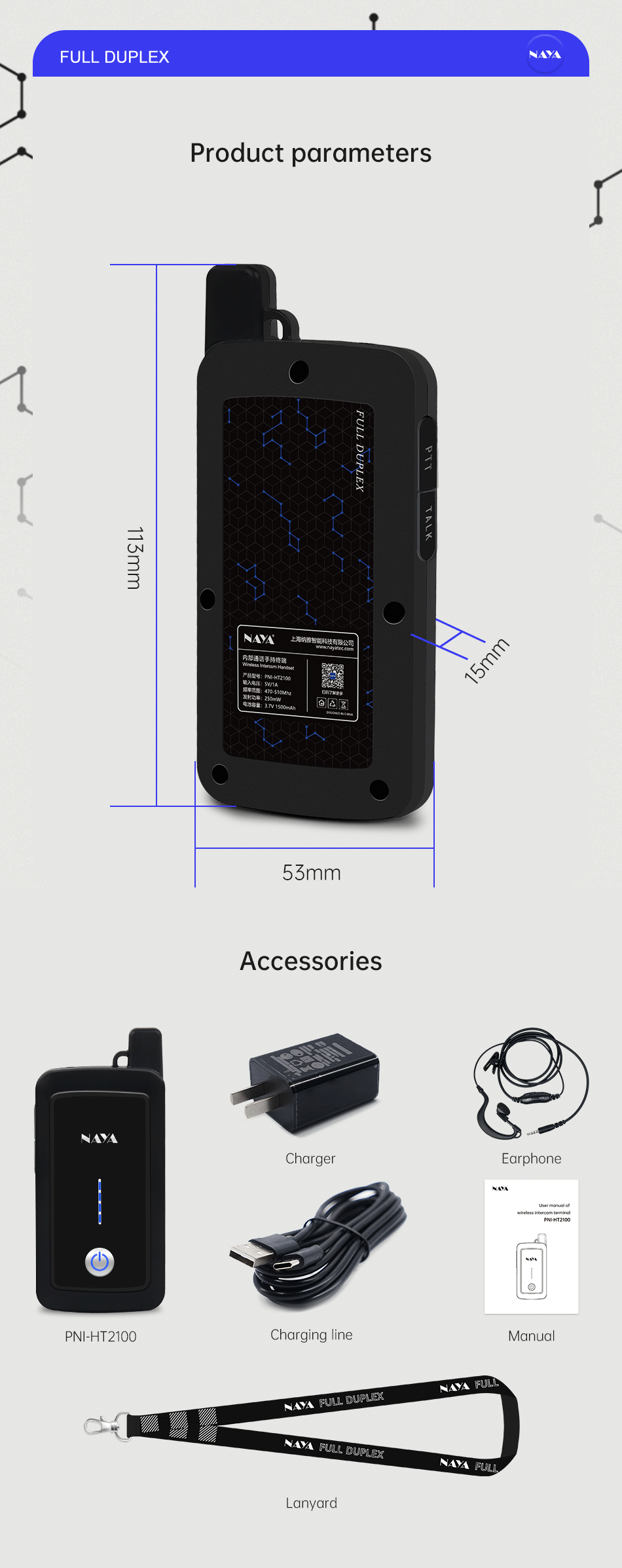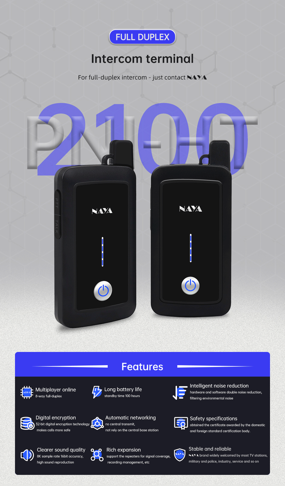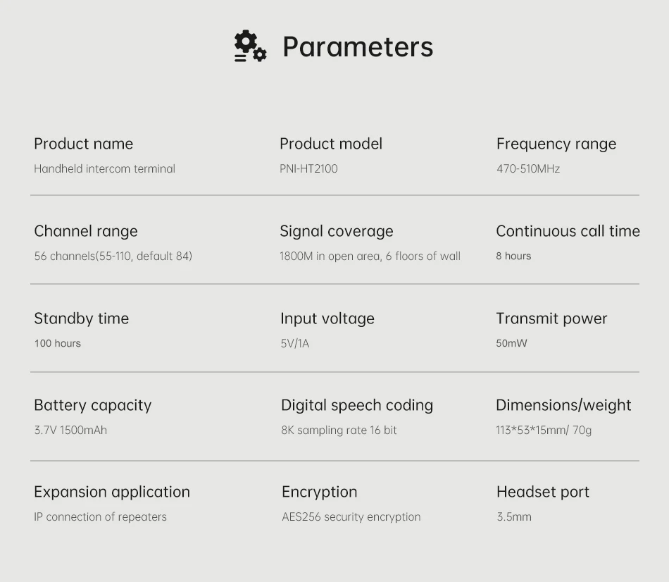 NAYA PNI-HT2100 Full Duplex Walkie Talkie Wireless Intercom System Transmission Distance 1800m Multi-Party Walkie-Talkie