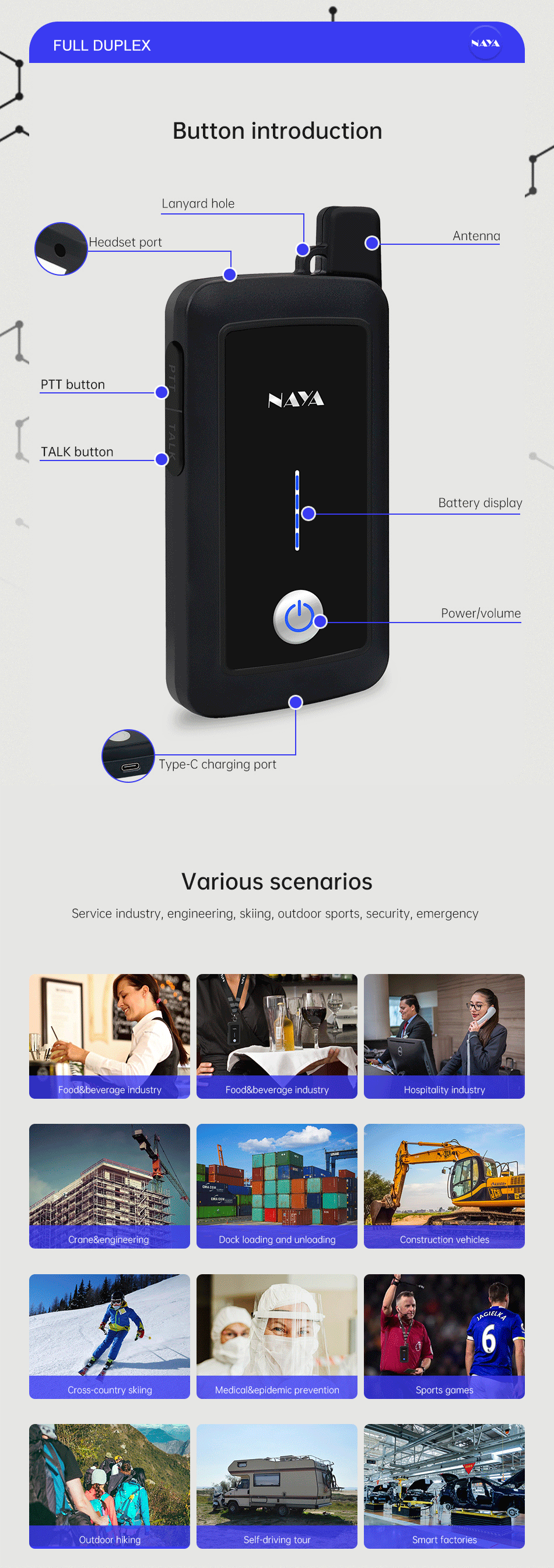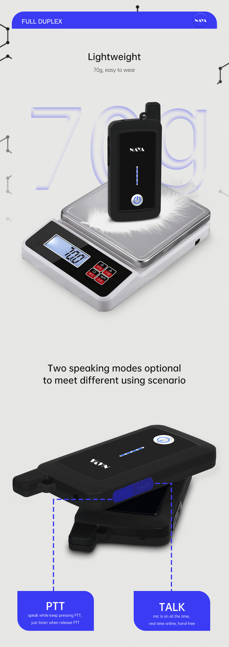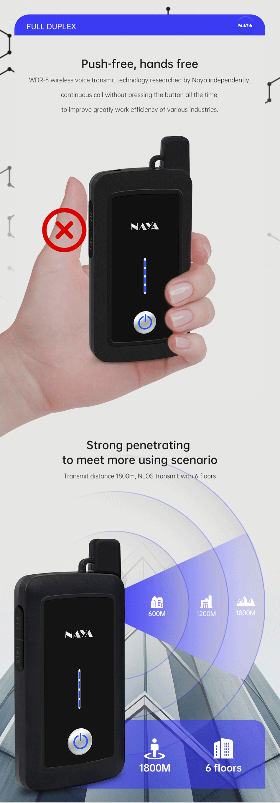 NAYA PNI-HT2100 Full Duplex Walkie Talkie Wireless Intercom System Transmission Distance 1800m Multi-Party Walkie-Talkie